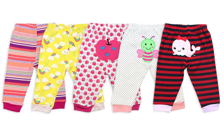Весенне-осенние 100% хлопковые детские брюки Одежда для новорожденных с мультяшным принтом Леггинсы для малышей 0-24 месяцев 5 шт.лот случайных цветов