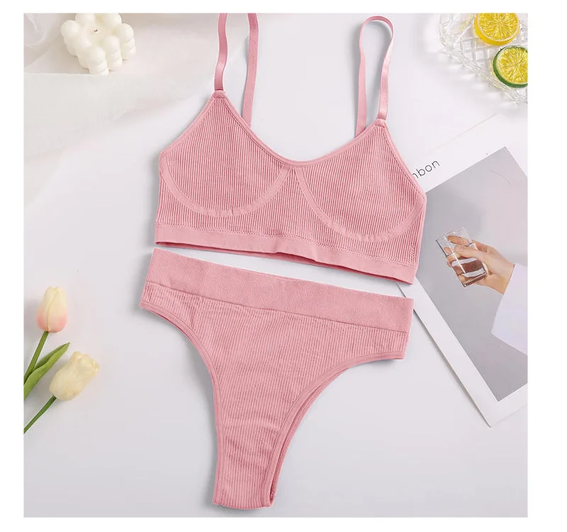 Женский сексуальный комплект с бюстгальтером, женские стринги с низкой талией для фитнеса, женское удобное нижнее белье для девушек, модный бюстгальтер, базовая эластичная майка