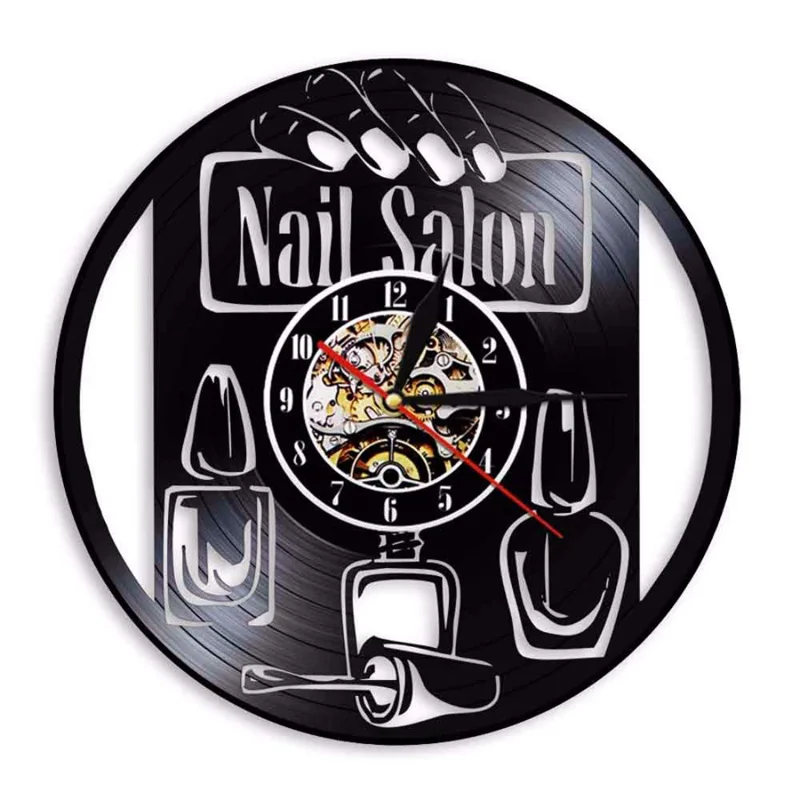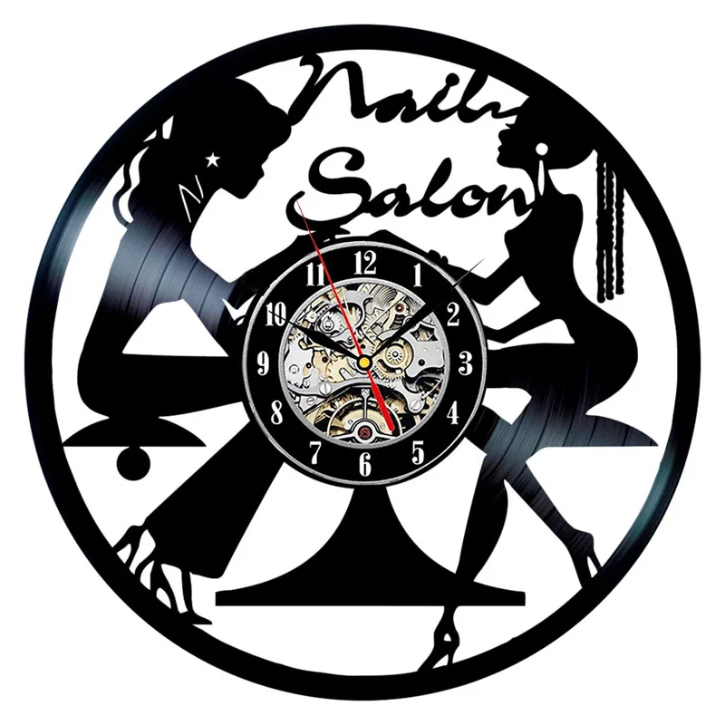 Декоративные бесшумные настенные часы для маникюрного салона, настенные часы с виниловой записью для маникюрного салона, современный дизайн, настенный знак для салона красоты, Декор, подарок
