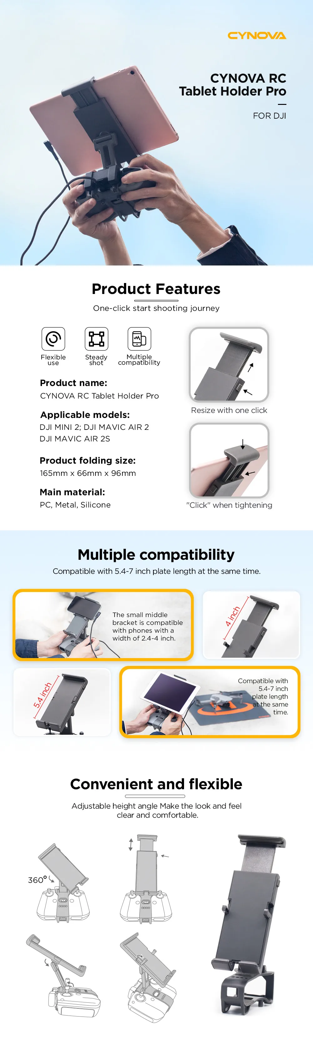 Пульт дистанционного управления CYNOVA для DJI RC-N1, держатель для планшетов и телефонов Mavic Air 2S Mini 2, брендовые аксессуары, поддерживает большинство телефонов и планшетов