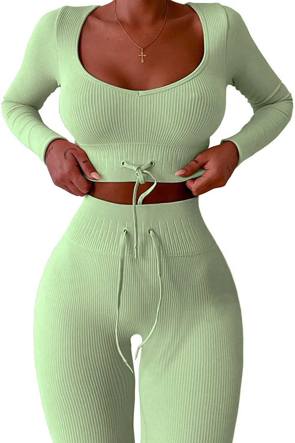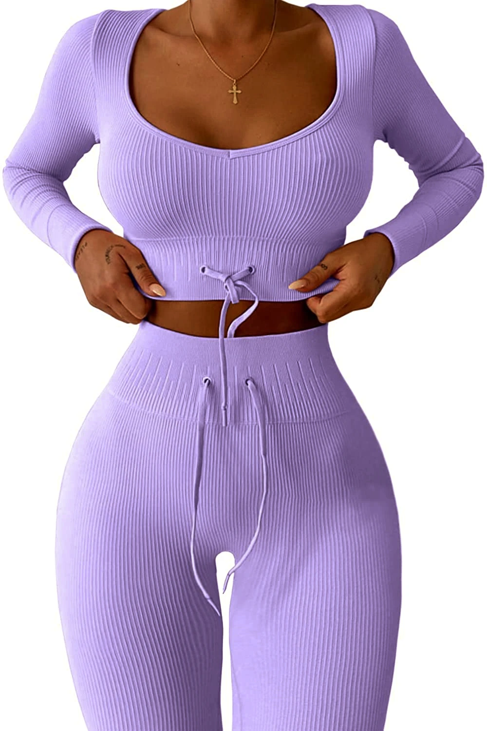 Цвет комплекта очень нежный, ткань приятная на ощуп, костюм достаточно эластичный и не просвечивает. Взяла размер s, оказался немного великоват в сравнении с другими комплектами размера s, но это не критично. Товар пришел быстро, спасибо!
