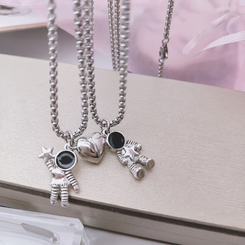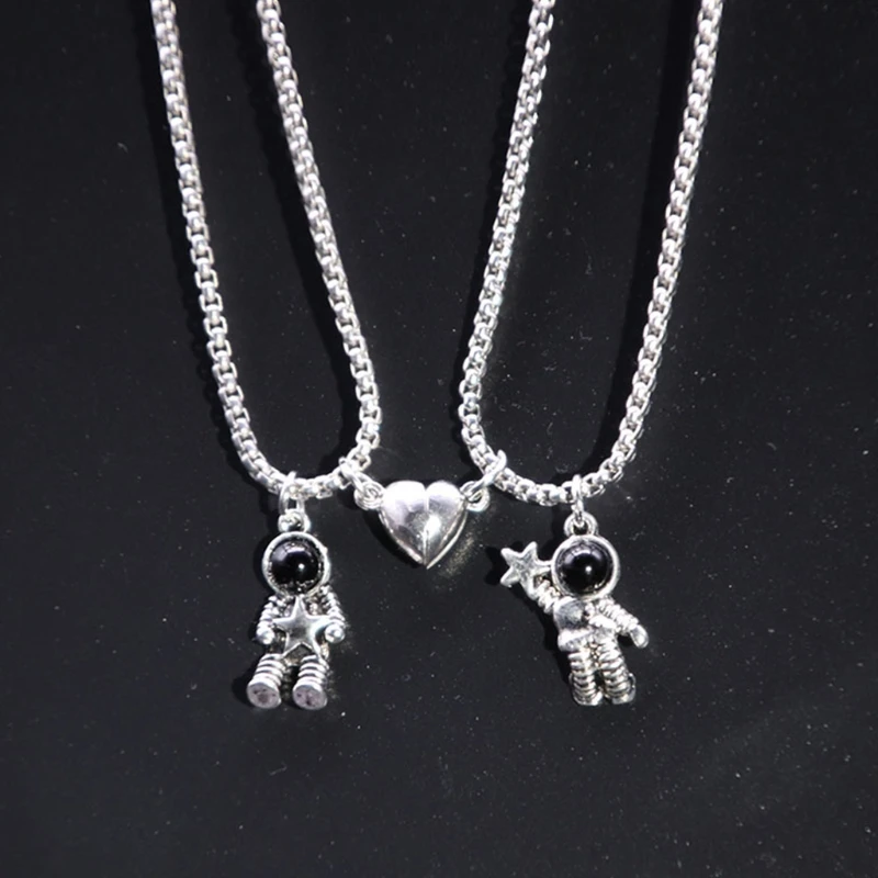Пары, подходящее ожерелье с кулоном космонавта, магнитное ожерелье с обещанием астронавта для женщин, мужчин, для него, для нее, ювелирные изделия дружбы