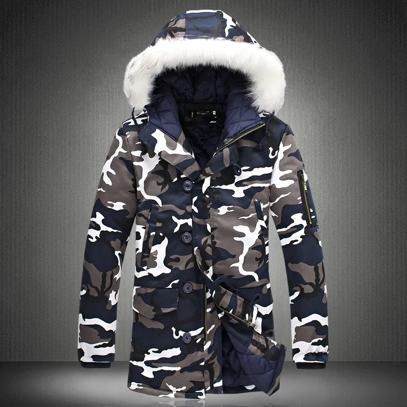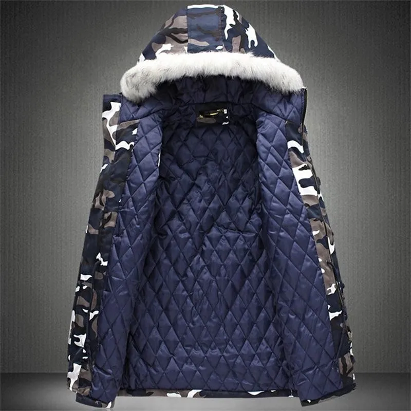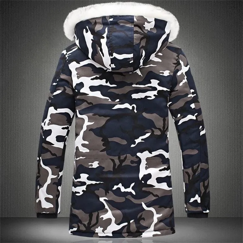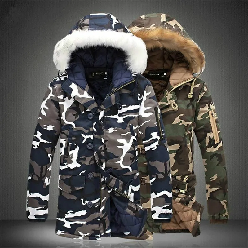 Мужская зимняя куртка с бархатной подкладкой, зеленая модная Камуфляжная парка, мужские военные Пальто, утепленные пальто с меховым капюшоном, ветровка для мужчин