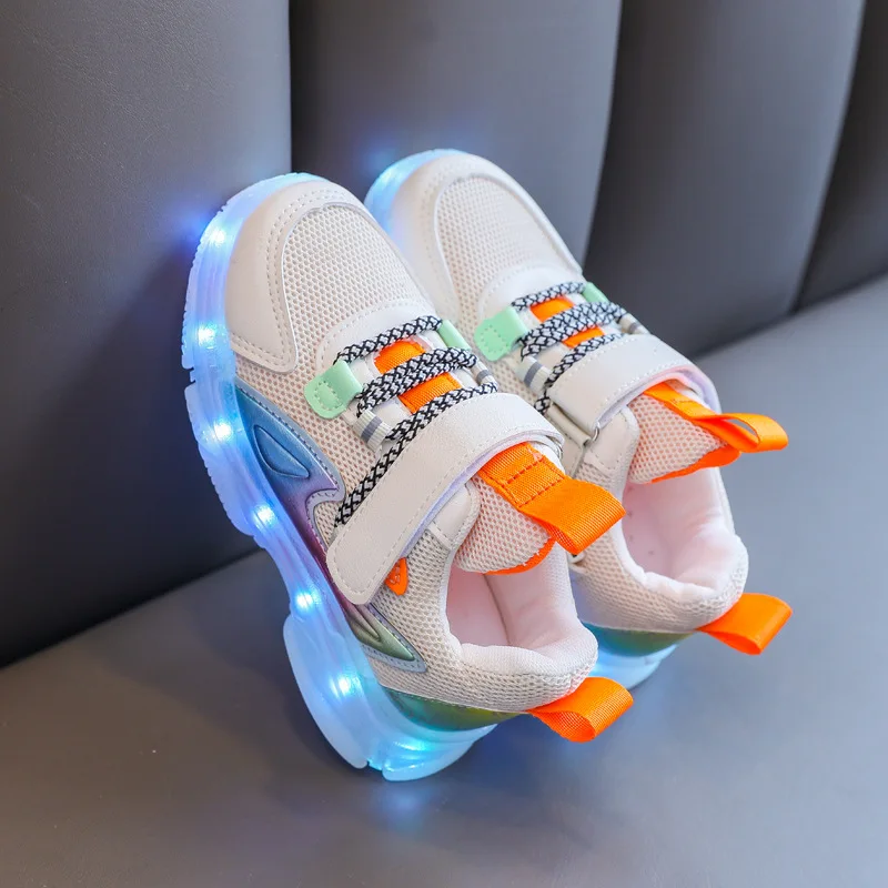 Детские светящиеся Яркие кроссовки, дышащие сетчатые Сникерсы для мальчиков, модная обувь с подсветкой, Размеры 25-36