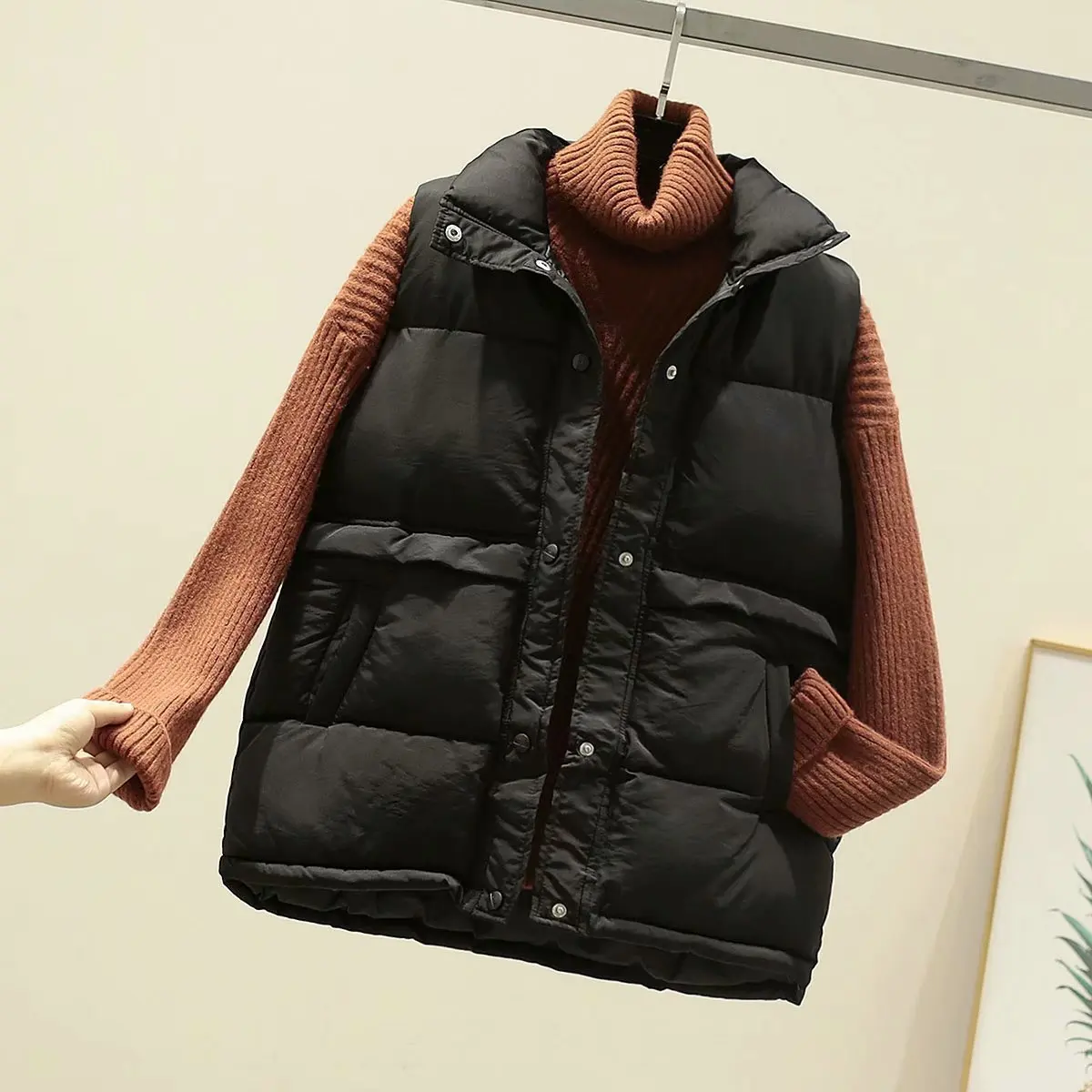 Женская куртка без рукавов, зимний Свободный жилет, пальто на пугов...