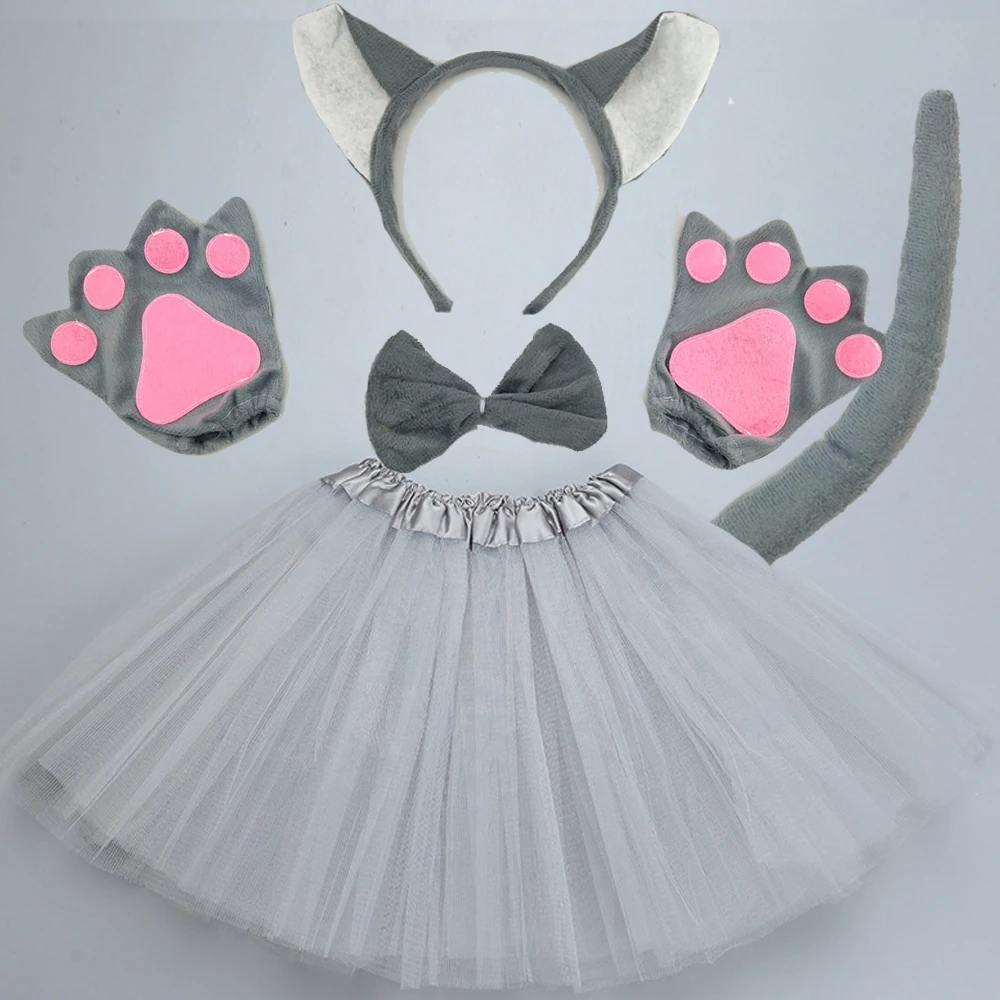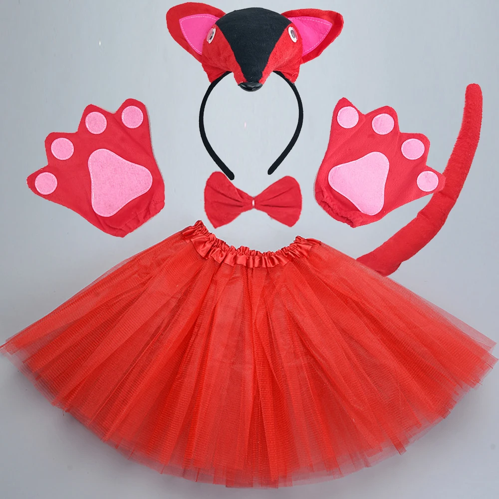 Костюм лисы и Волка для взрослых и детей, повязка на голову, хвост, галстук, юбка, Пурим лапы, реквизит для косплея на день рождения
