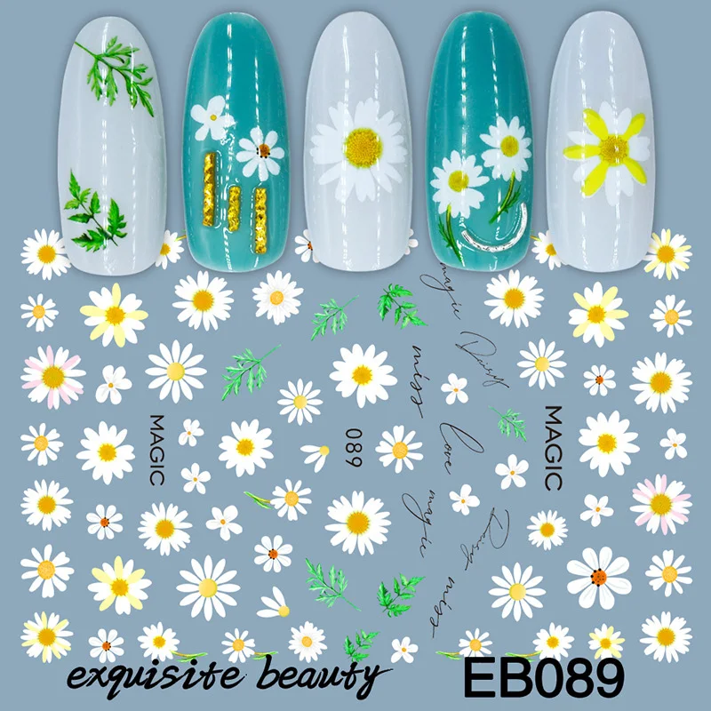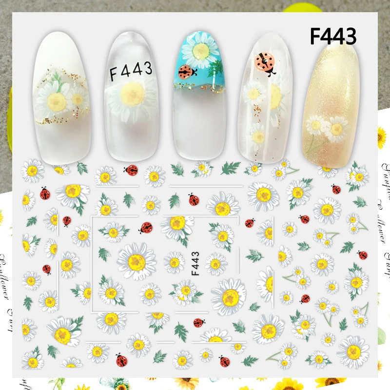 Слайдеры для ногтей, 1 лист, цветущие искусственные водные наклейки для ногтей, весенние цветочные блестящие наклейки
