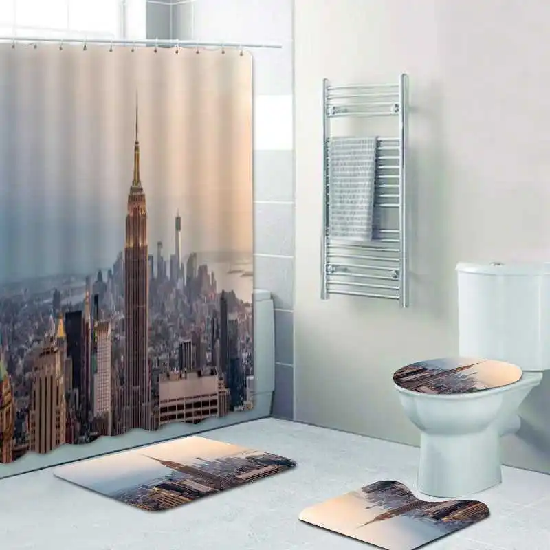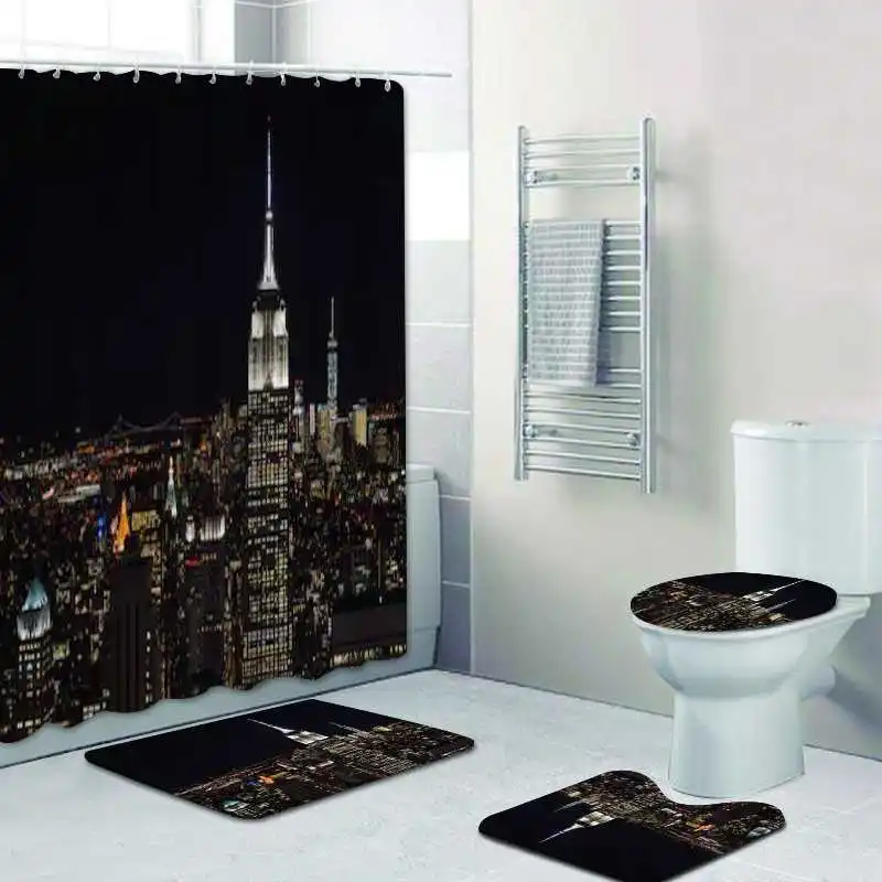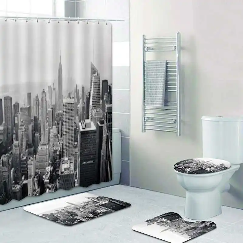 Черные и белые технические шторы для ванной комнаты, набор водонепроницаемых штор для душа, чехол для унитаза, коврик, нескользящий коврик для ванной