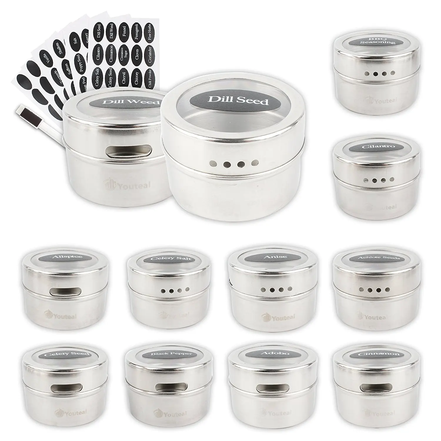 Банки для специй, из нержавеющей стали, с наклейками, набор для сол...