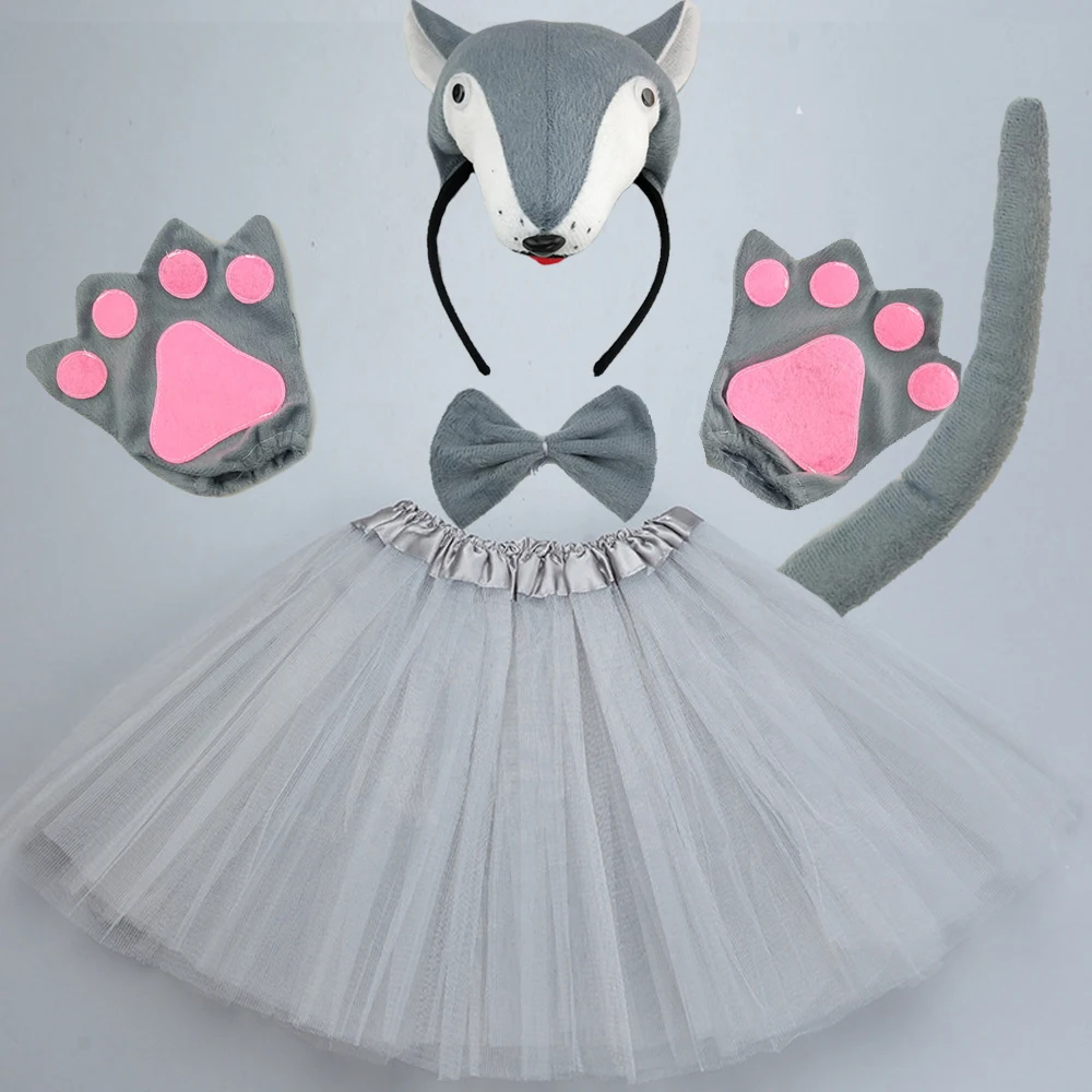 Женский костюм Красной лисы для девочек и детей, повязка на голову, хвост, галстук, лапа, юбка, животные, реквизит для косплея, подарок на день рождения, вечеринку, Baby Shower, Хэллоуин