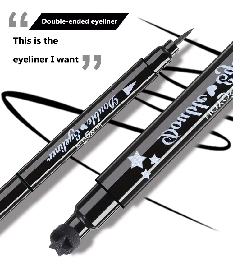 1 шт. двухсторонняя жидкая подводка для глаз карандаш со штампом 2 в 1 Макияж штампы печать Ручка Водонепроницаемая быстросохнущая Черная Подводка для глаз Косметика TSLM2