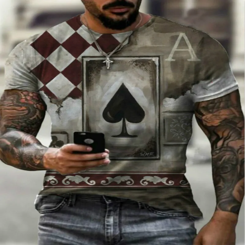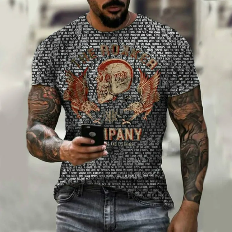 Мужская Летняя Повседневная футболка, свободная дышащая футболка с квадратным принтом черепа и карт, 2021