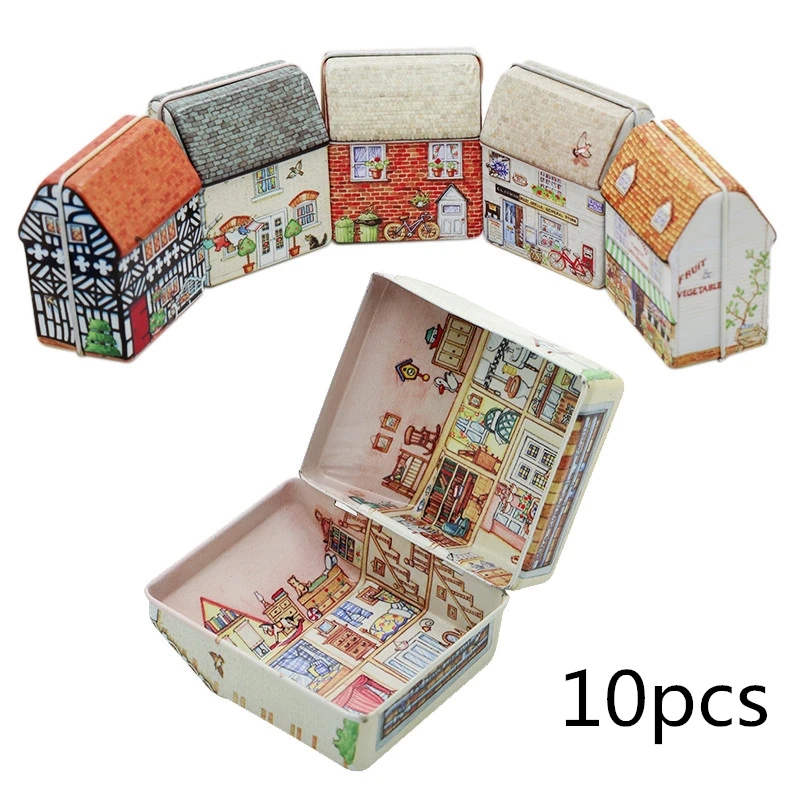 Металлическая коробка, пустая жестяная коробка для хранения, 10 шт., жестяной домик для мечты, жестяной металлический контейнер, маленький органайзер, подарок для детей, бесплатная доставка