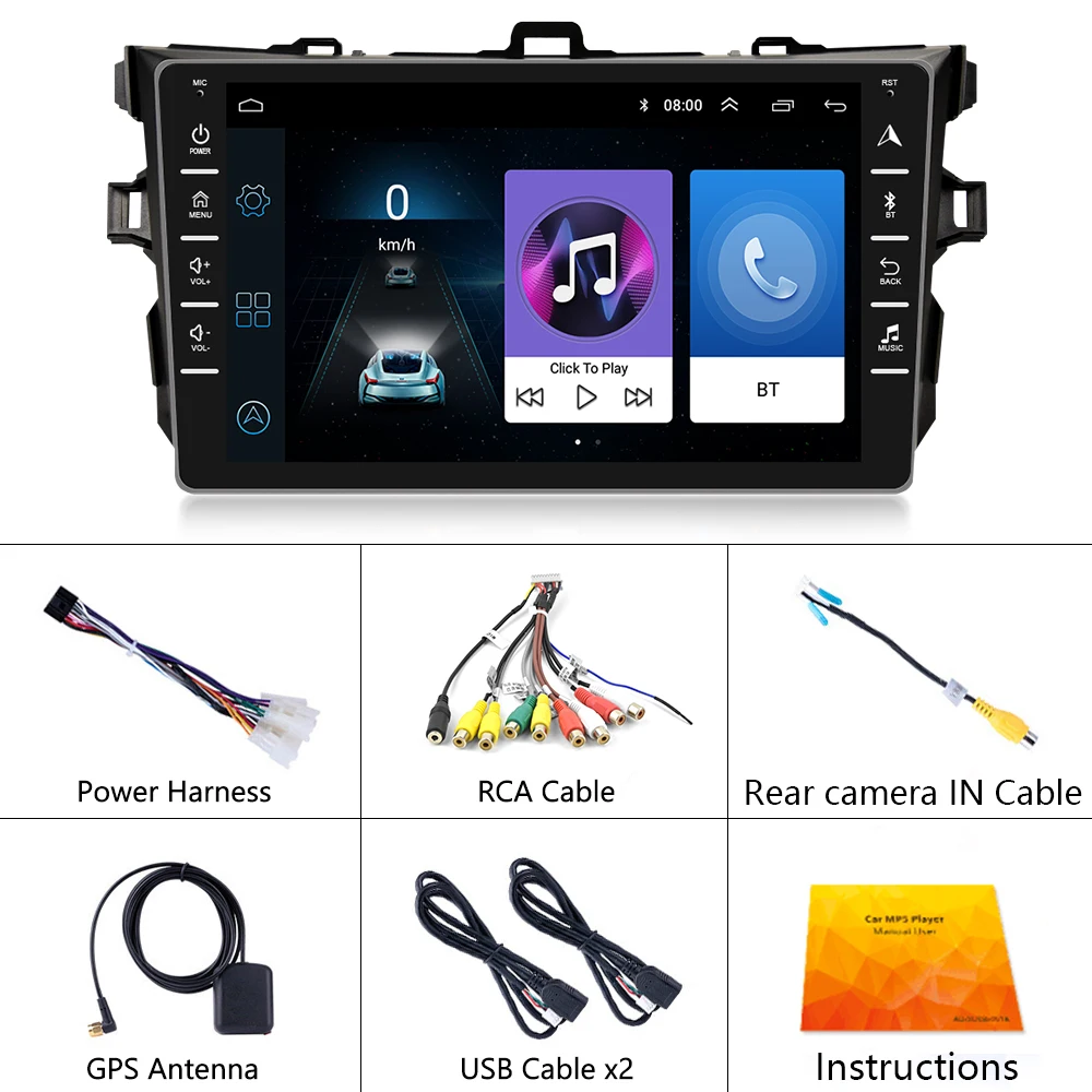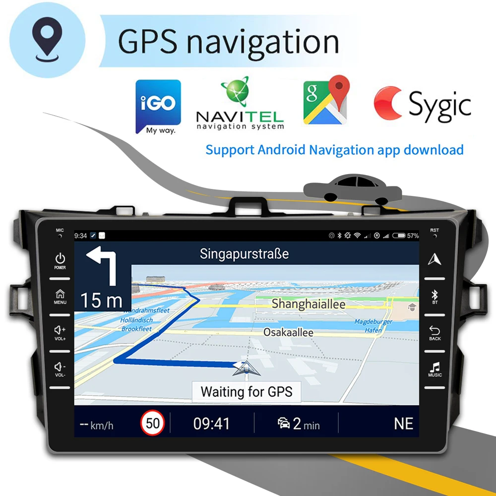 Podofo 2Din Android 9.1 GPS навигация Радио Универсальный мультимедийный плеер для 2006 2007 2008 2009 2010 2011 2012 Toyota Corolla