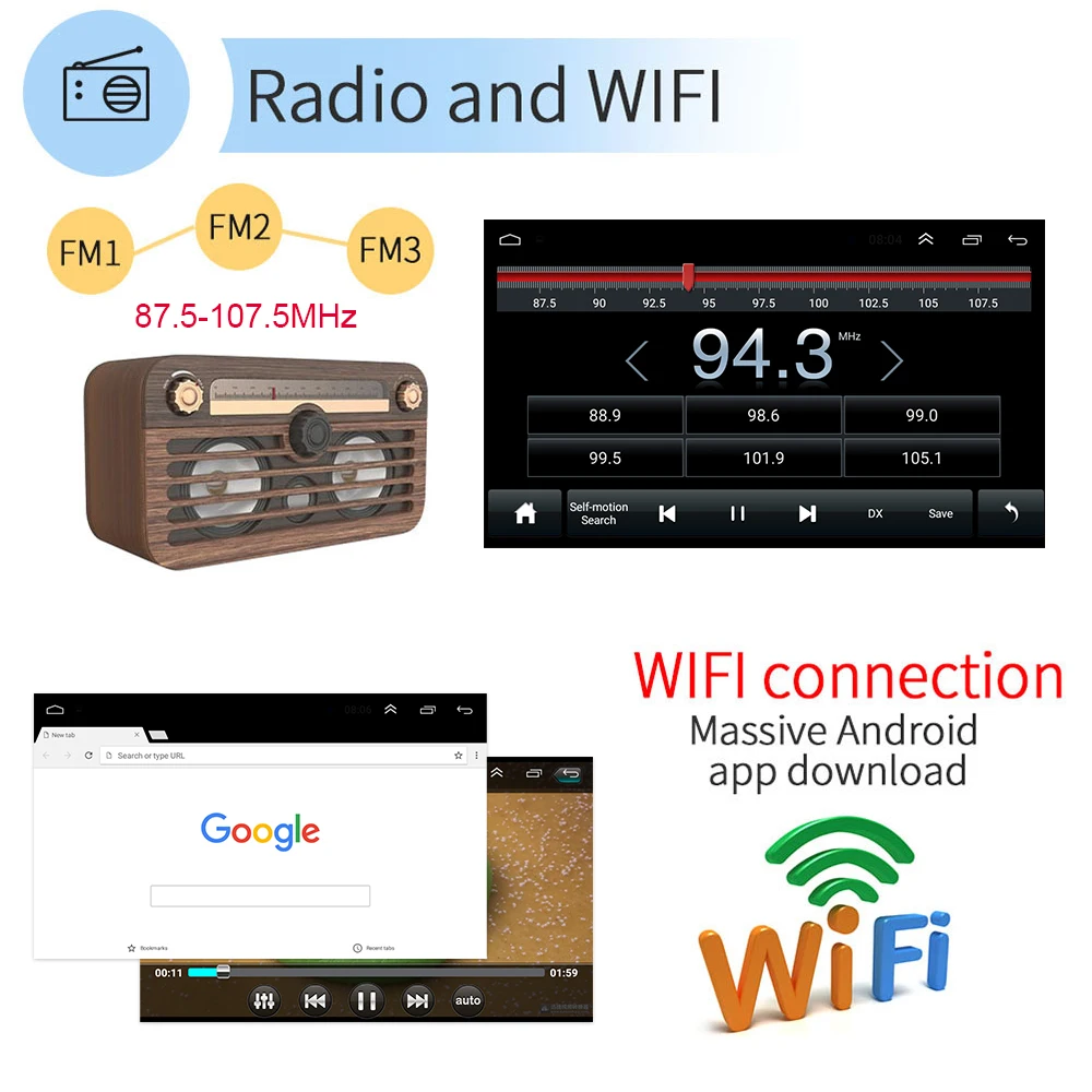Особенности1.Wi-Fi подключение: встроенный модуль Wi-Fi, может подключаться к Интернету с помощью Wi-Fi горячей точки, скачать приложение для просмотра онлайн-телевизора, фильма, чата с вашими фирдами2. Gps-навигация: Встроенный навигационный модуль, Бесплатная навигационная карта (включает большинство стран слова)3. Функция Bluetooth: Встроенный модуль bluetooth, поддержка bluetooth телефона, громкой связи для звонков или bluetooth воспроизведения музыки4. Функция зеркального соединения: Android MP5 плеер может зеркально соединяться с телефоном Android по usb-кабелю (IOS телефонная связь по WIFI), вы можете касаться экрана MP5, чтобы управлять телефоном AndroidТелефон IOS не может работать с сенсорным MP5 экраном (не подходит для всех телефонов)5. Функция входа DVR: Поддержка USB внешнего водительского рекордера (DVR) вход (только для DVR с приложением), вы можете управлять видеорегистратором с помощью приложения6. Функция заднего вида: Поддержка входа камеры заднего вида, поддержка автомобиля более безопасная и удобная7. Настройка радио: Поддержка настройки FM, вы можете слушать радио, которое вас интересует, Наслаждайтесь временем вождения8. Задний вход USB порта: Поддержка заднего кабеля USB вход, может воспроизводить музыку/фильм (u-диск в комплект не входит)Разрешение 9,1020*600: высокое качество изображения10. Улучшите качество звука с помощью эквалайзера, используйте эквалайзер для регулировки звука, чтобы получить лучшие результатыОсобенностиНапряжение: 12 В постоянного токаОперационная система: Android 9,1Оперативная память: 1GВнутренняя память: 16 ГбРазмер экрана: 8 ''2.5D емкостный экранПоддержка автомобильные брелки с логотипом измененияВерсия Bluetooth: 4,0Bluetooth с ключевыми словами: 0000Wi-Fi: поддержкаGPS: поддержкаРадио двухдиапазонный FMРазрешение: 1080PКлючевое слово заводской настройки: 8888Формат аудио: MP3 MP2 AAC OGG FLAC APE WMA WAV RM AC3Формат видео: AVI 3GP/MP4 MOV MPG MKV WMV RMVBЯзык: китайский, английский, тайваньский, арабский, бразильский, русский, иврит, испанский, итальянский, французский, тайский, немецкий, японский, корейский, турецкий, чешский, иранский, венгерский, голландский, польский, шведский, украинский, вьетнамский, румынский, греческий, датский, финскийПродукт в комплекте1 х Android MP5 плеер1 х Кабель питания1 x GPS антенна2 x USB кабель1 х кабель RCA1 x CAM-INРуководство пользователя (1 шт.)