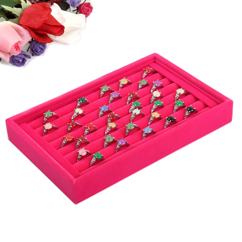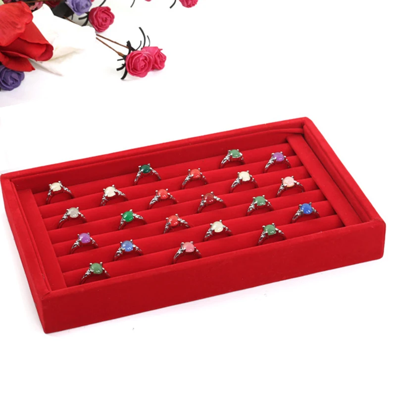 Бархатная коробка-лоток для демонстрации колец, органайзер, держатель для хранения сережек, колец, шкатулка для ювелирных изделий для женщин и девушек
