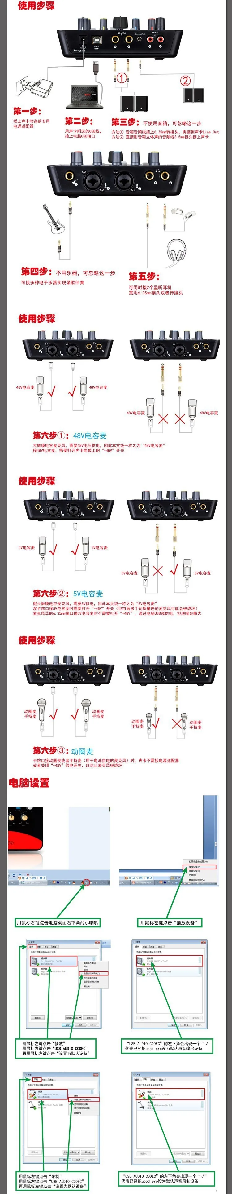 1. 16-битный 48 кГц 2 микрофонного входа/1 гитарный вход, 2-выходной USB-интерфейс записи
