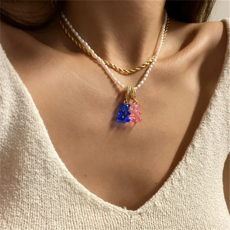 HUANZHI, новинка 2021, красочный медведь из смолы, жемчуг, циркон, бисер, смайлик, искусственное ожерелье для женщин, девушек, ювелирные изделия для вечеринок, подарки