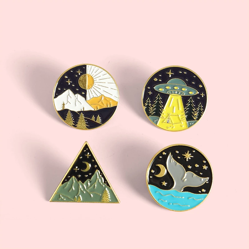 Эмалированная заколка в виде гор, значки звездной ночи, броши в вид...
