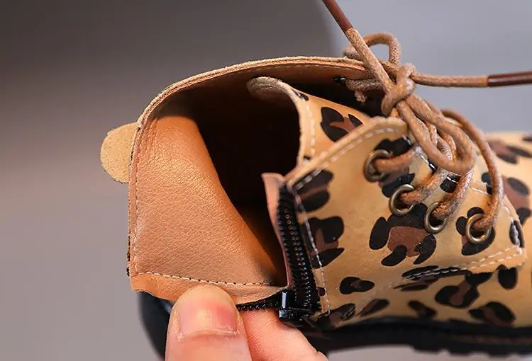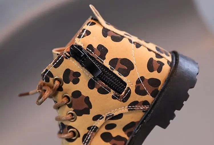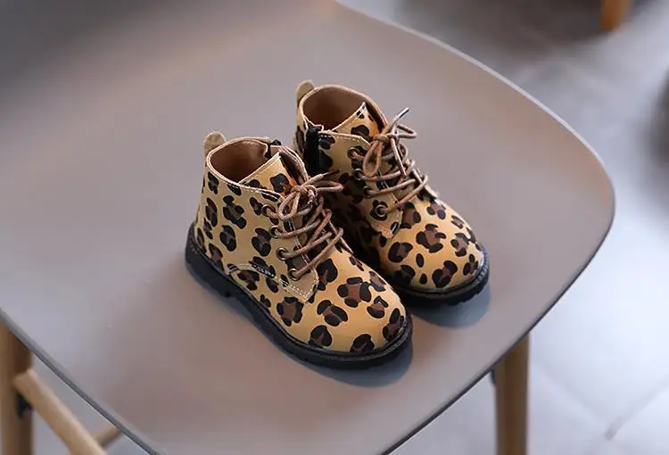 Обувь для девочек; Детские Ботинки Martin; Модные детские ботинки с леопардовым принтом; Кожаные ботильоны на молнии для мальчиков; Сезон весна-осень
