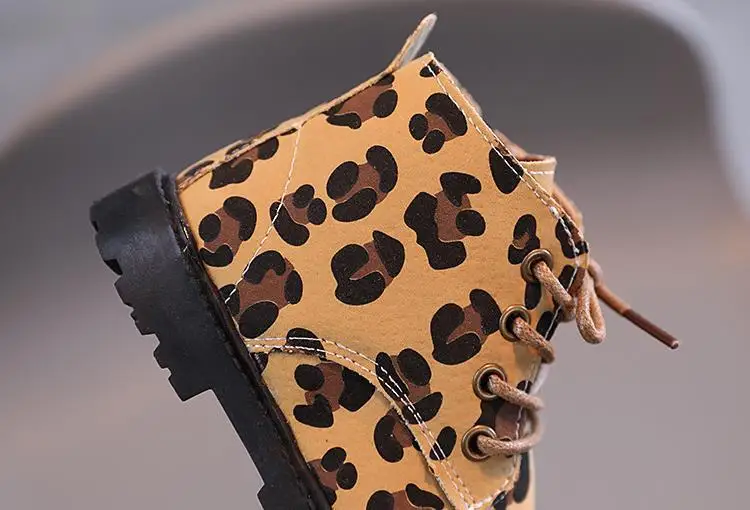 Ботинки детские кожаные с леопардовым принтом, модные повседневные ...
