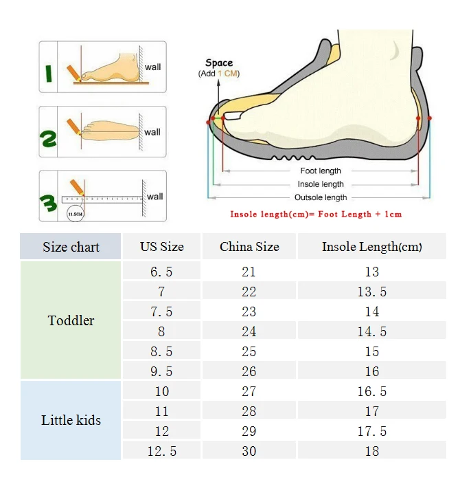 Пожалуйста, выберите больший размер для детей, детские ноги растут очень быстро, и вам нужно некоторое время, чтобы получить обувь