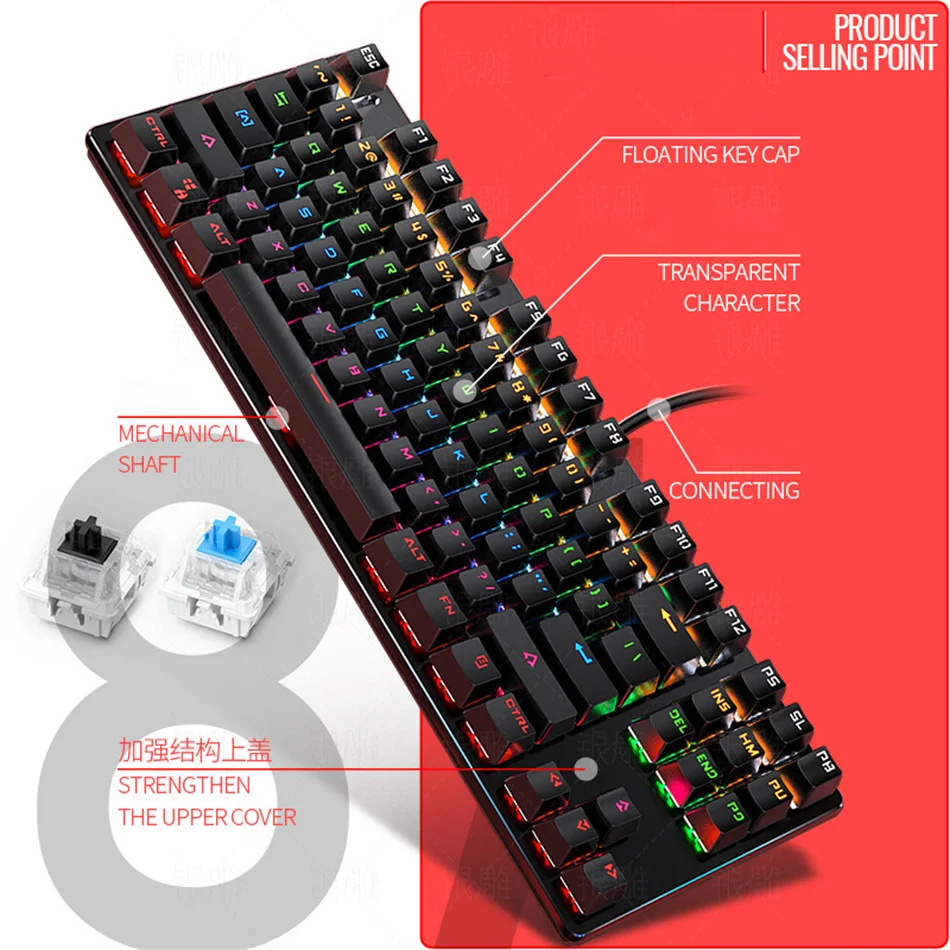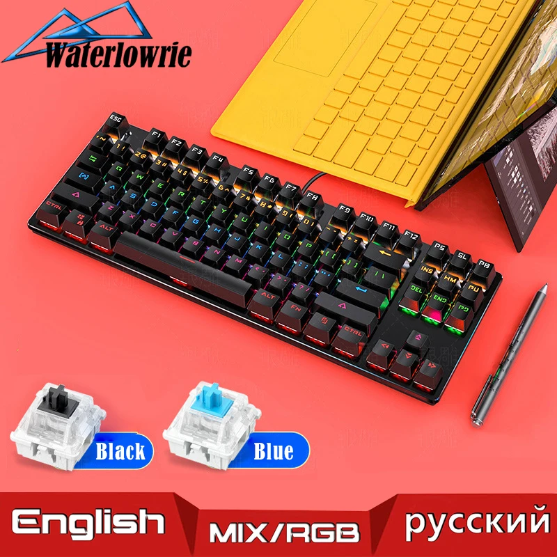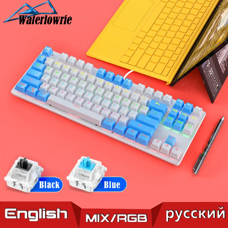 Игровая механическая клавиатура, проводная клавиатура с 87 клавишами, защитой от фиктивных нажатий, с чернымсиним переключателем и подсветкой, для macbook pro, геймеров, ноутбуков и ПК