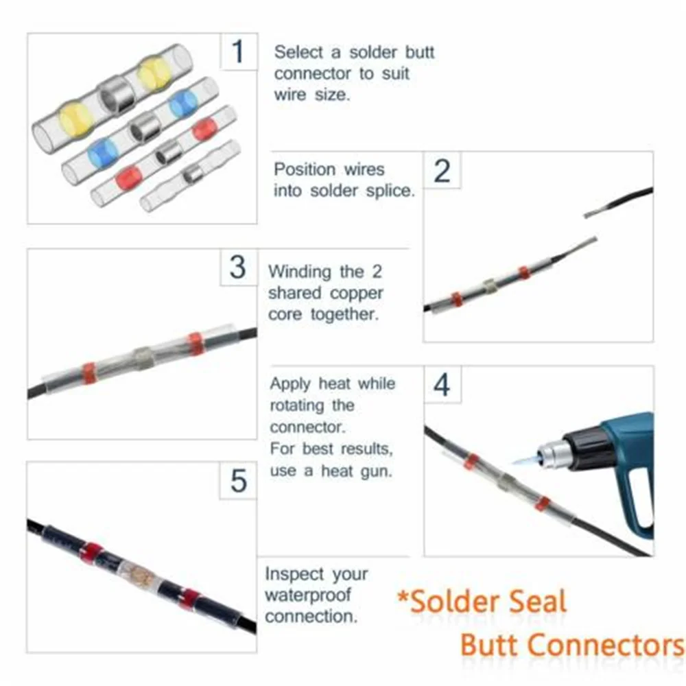 -Легкий и быстрый процесс: все-в-одном шаг припоя и процесс уплотнения. Нет необходимости в обжимных инструментах и паяльной машине. Таймер и беспорядок -Водонепроницаемость и изоляция: конструкция с двумя стенками-наружные полиолефиновые трубки обеспечивают изоляцию и повышают прочность на изгиб; Термоплавкий клей и припой внутри обеспечивают плотное соединение проводов и позволяют избежать выскальзывания проводов из терминала -Будьте организованны: Наши разъемы поставляются в ящике для хранения, легко хранить и переносить. Цветная трубка позволяет легко определить правильный размер соединителя для каждого применения -Широкое применение: Коэффициент усадки: 3:1. Идеально подходит для автомобилей, лодок, морских и других видов применения на открытом воздухе