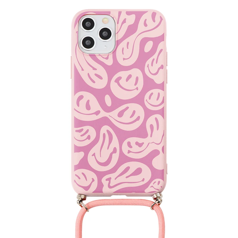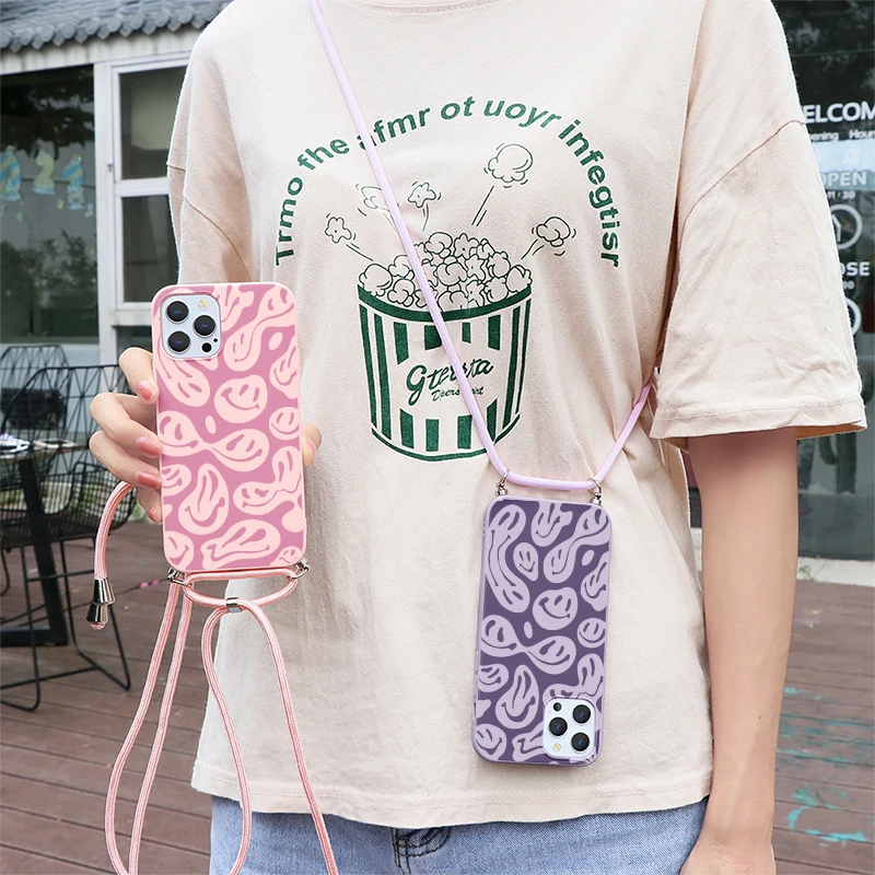 Милые Мультяшные чехлы с ожерельем и ремешком через плечо для iPhon...