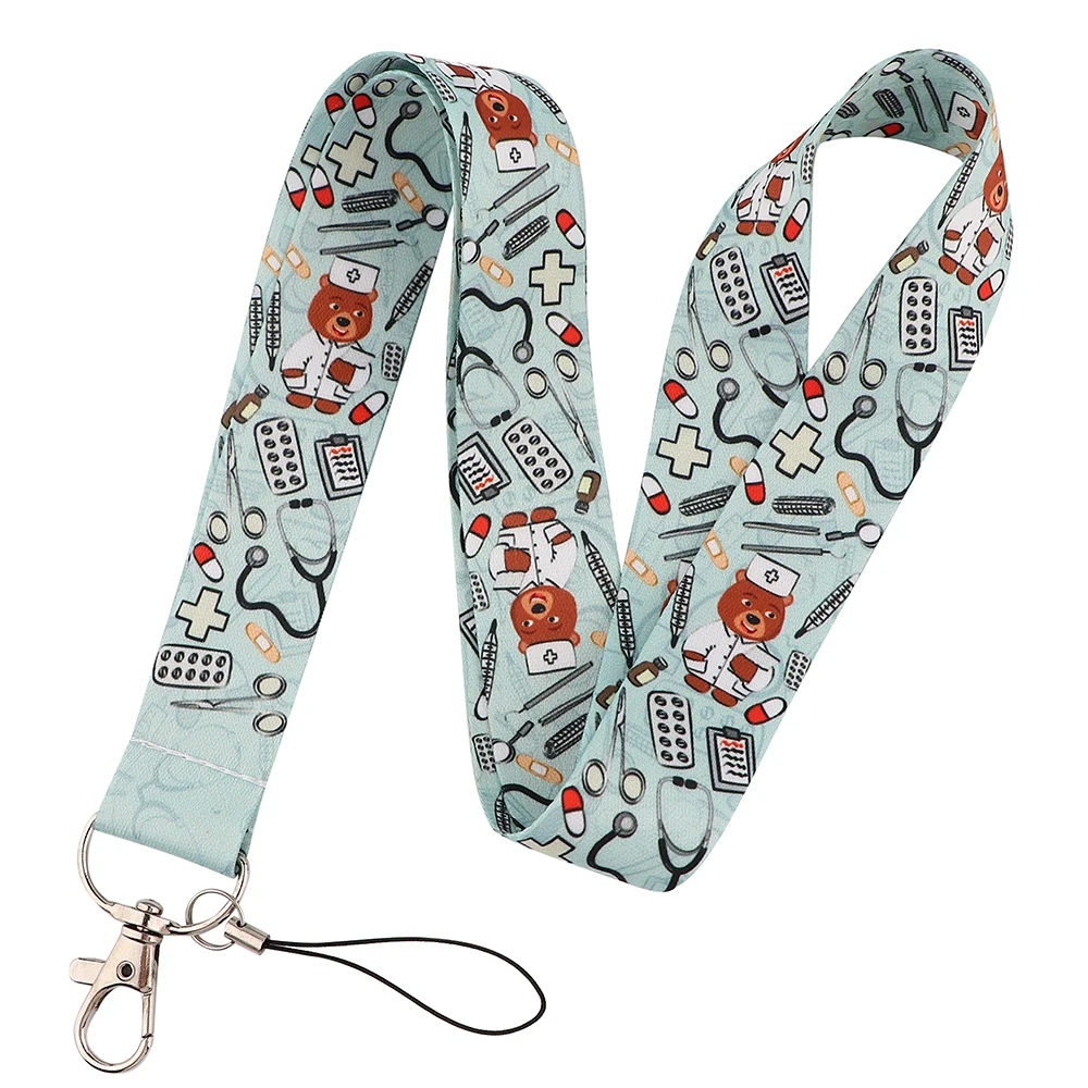 E3443 мультяшный медведь доктор Сделай Сам шнурок для ключей Ремешок для Телефона шейный ремешок брелок со звездами ID бейдж держатель для медсестры
