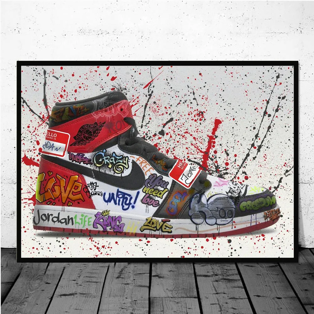 Художественные кроссовки с граффити, холст, художественные постеры и принты, модные настенные картины для украшения комнаты