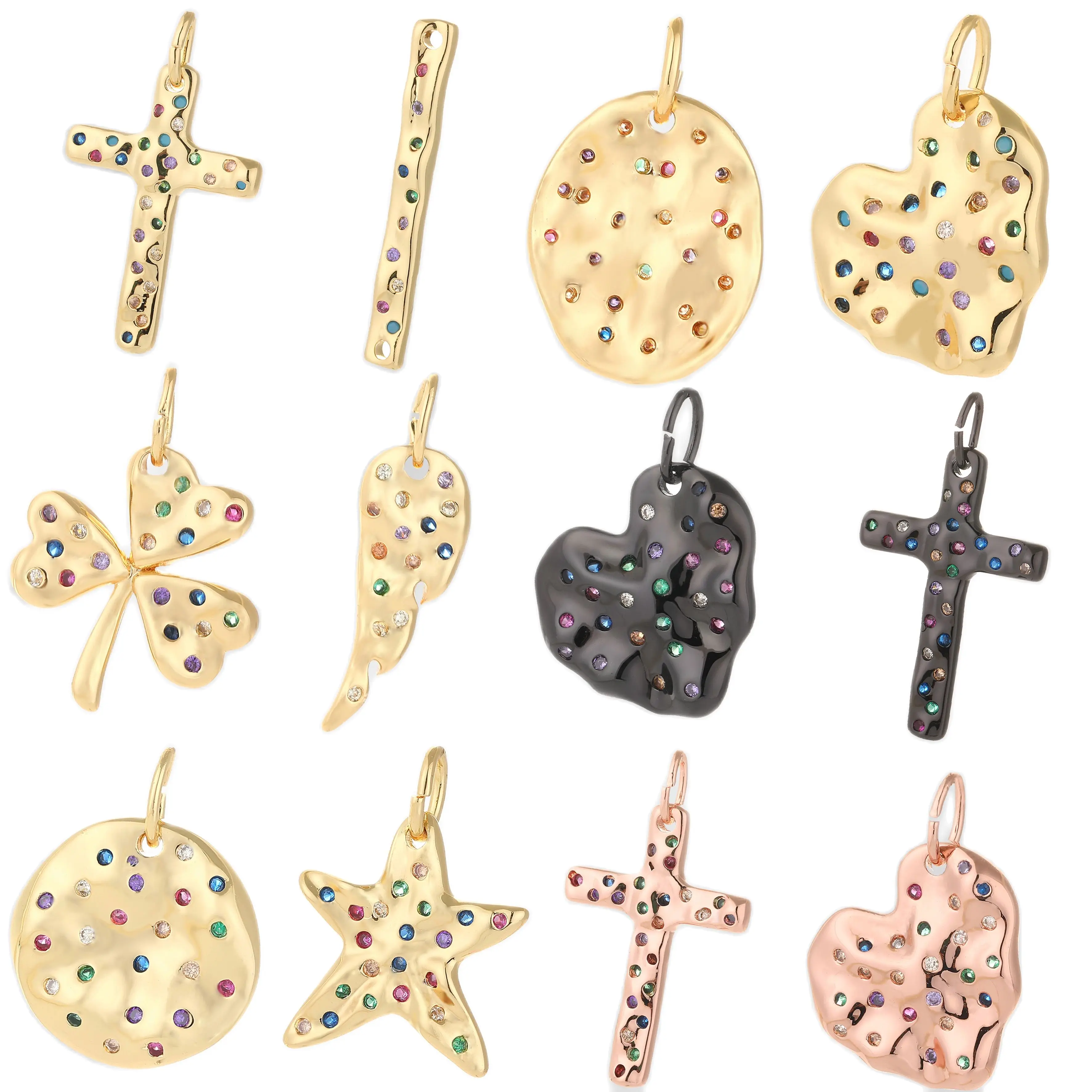 Подвеска в виде сердца, креста, для женщин, для изготовления ювелирных изделий, с инкрустацией из меди, с крыльями из циркона, в стиле бохо, 2021