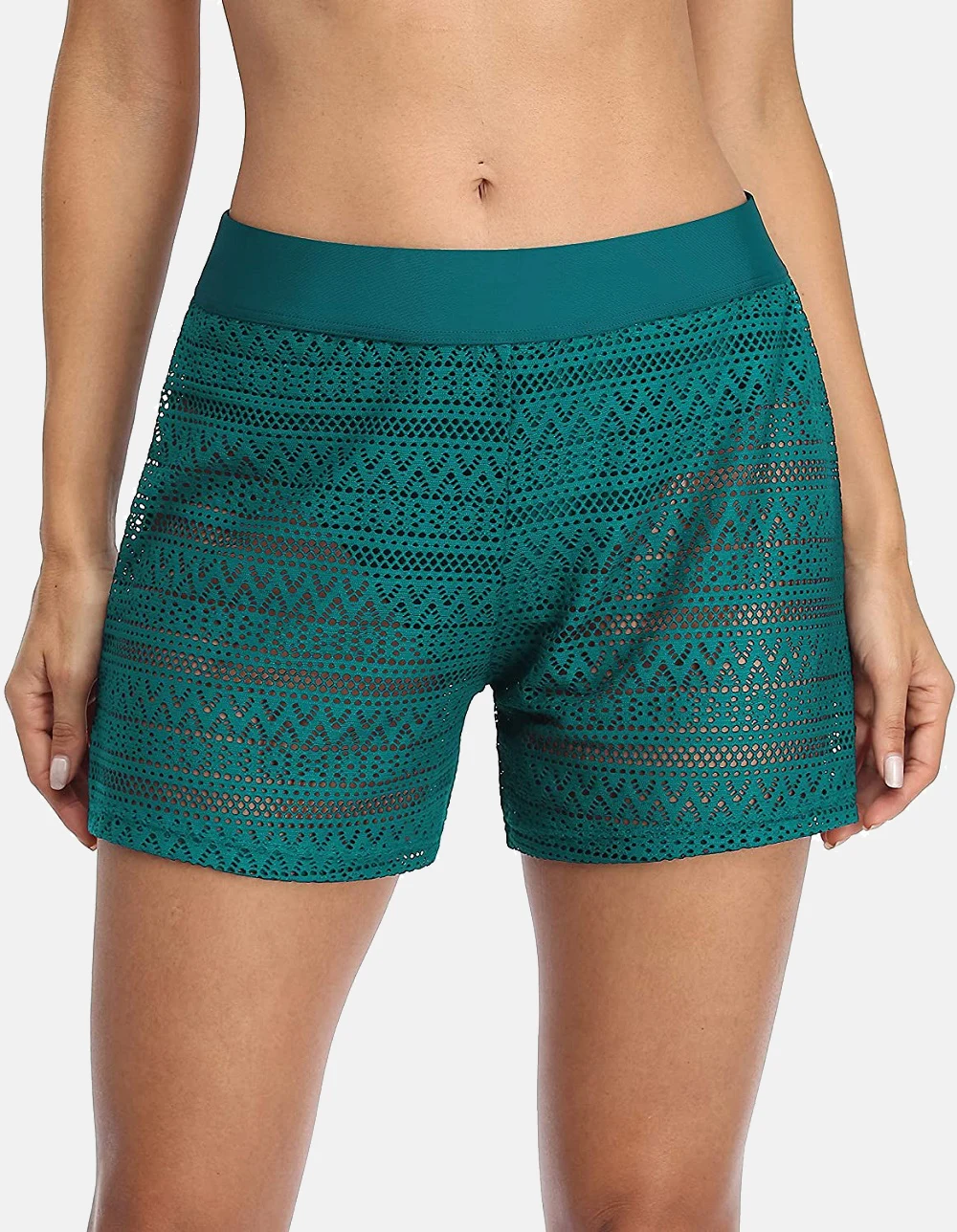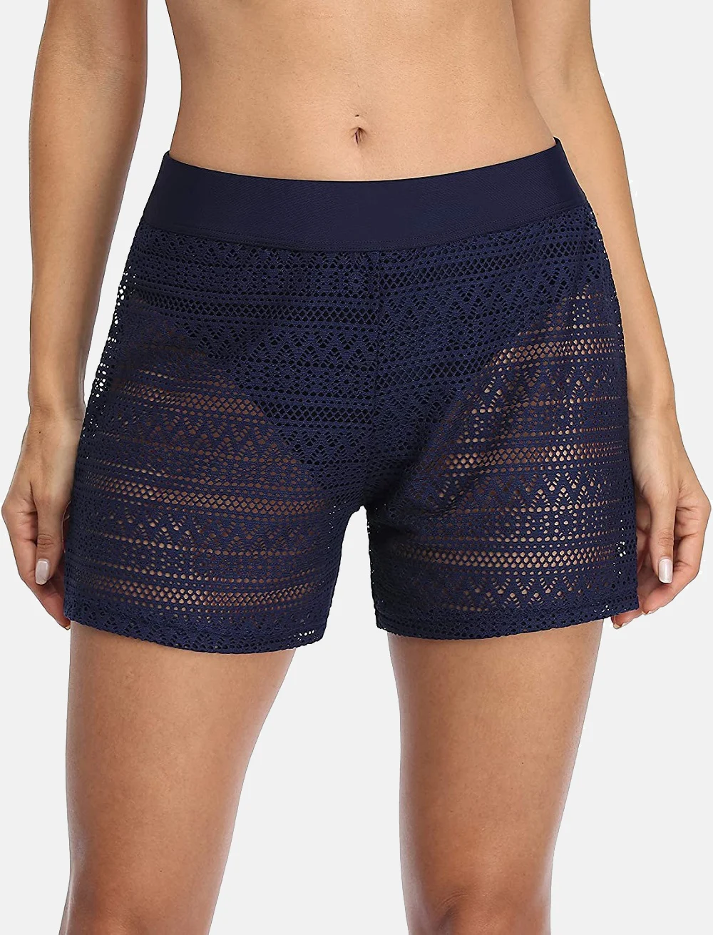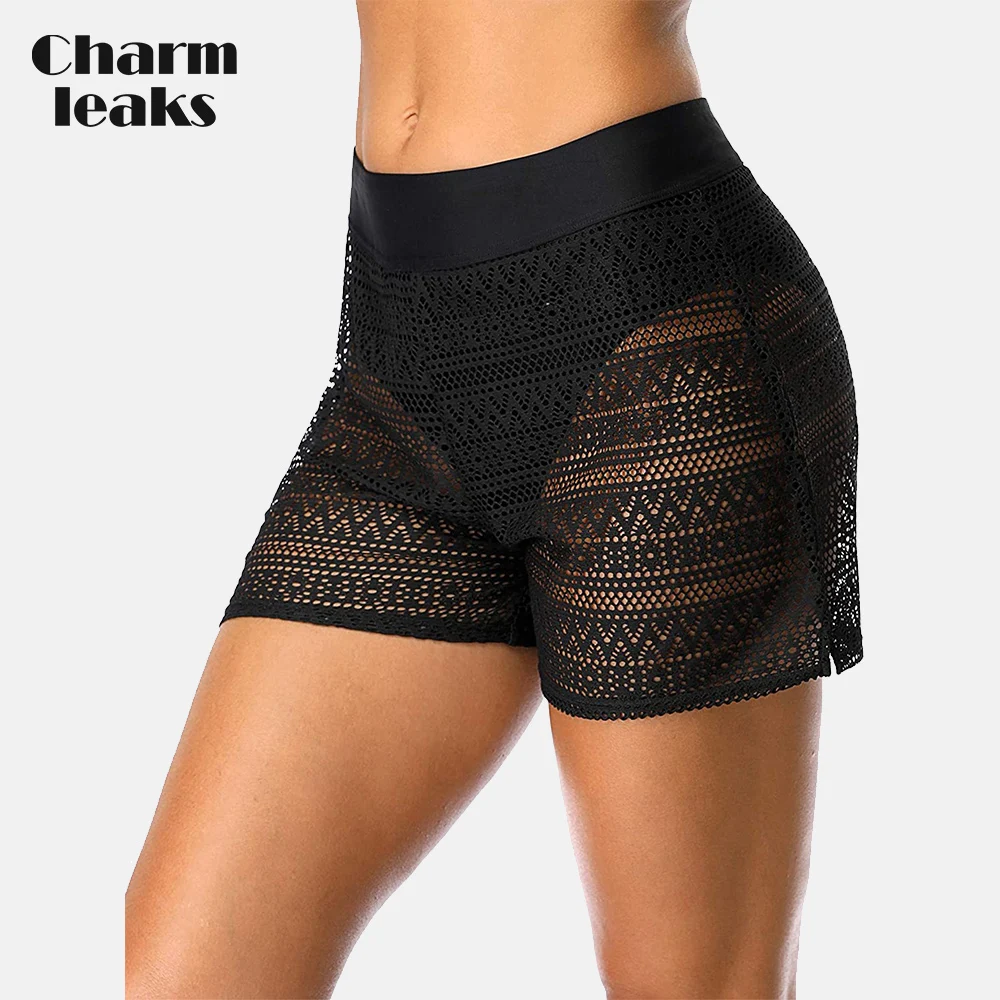 Женские кружевные шорты для плавания Charmleaks, однотонные шорты для плавания, плавки для плавания, купалник, женский купальник