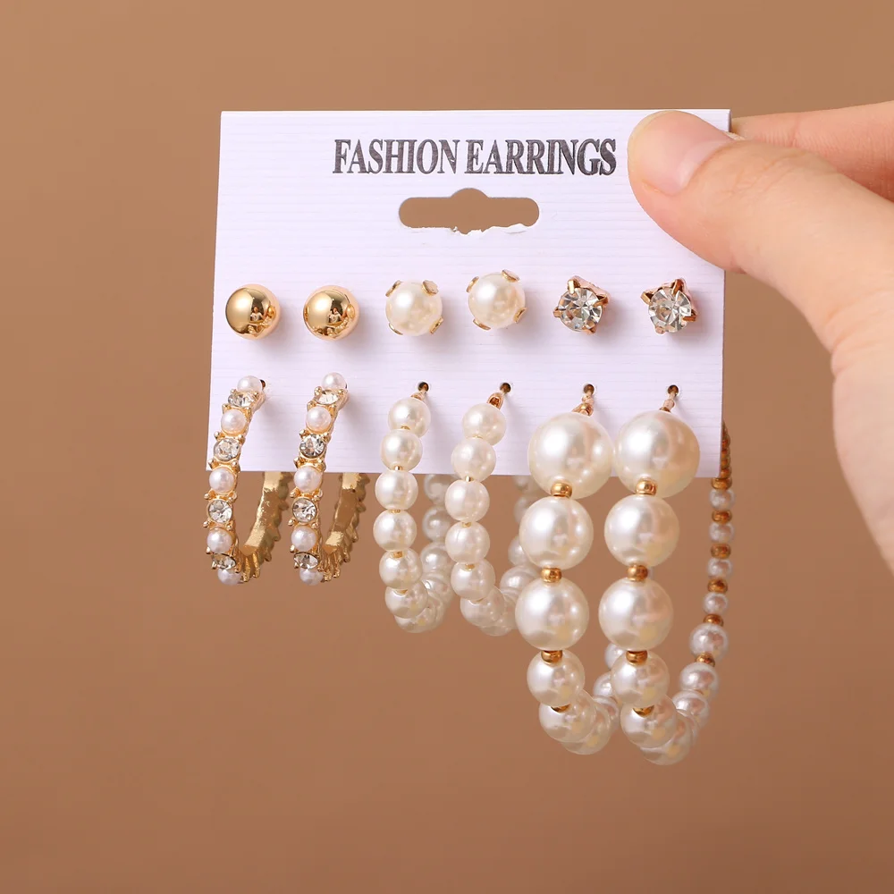 Винтажные серьги-кольца KISS WIFE с большим жемчугом, набор для женщин, геометрические металлические серьги-гвоздики с кристаллами, тренд 2021 года, модные комплекты украшений сережки Серьги серёжки