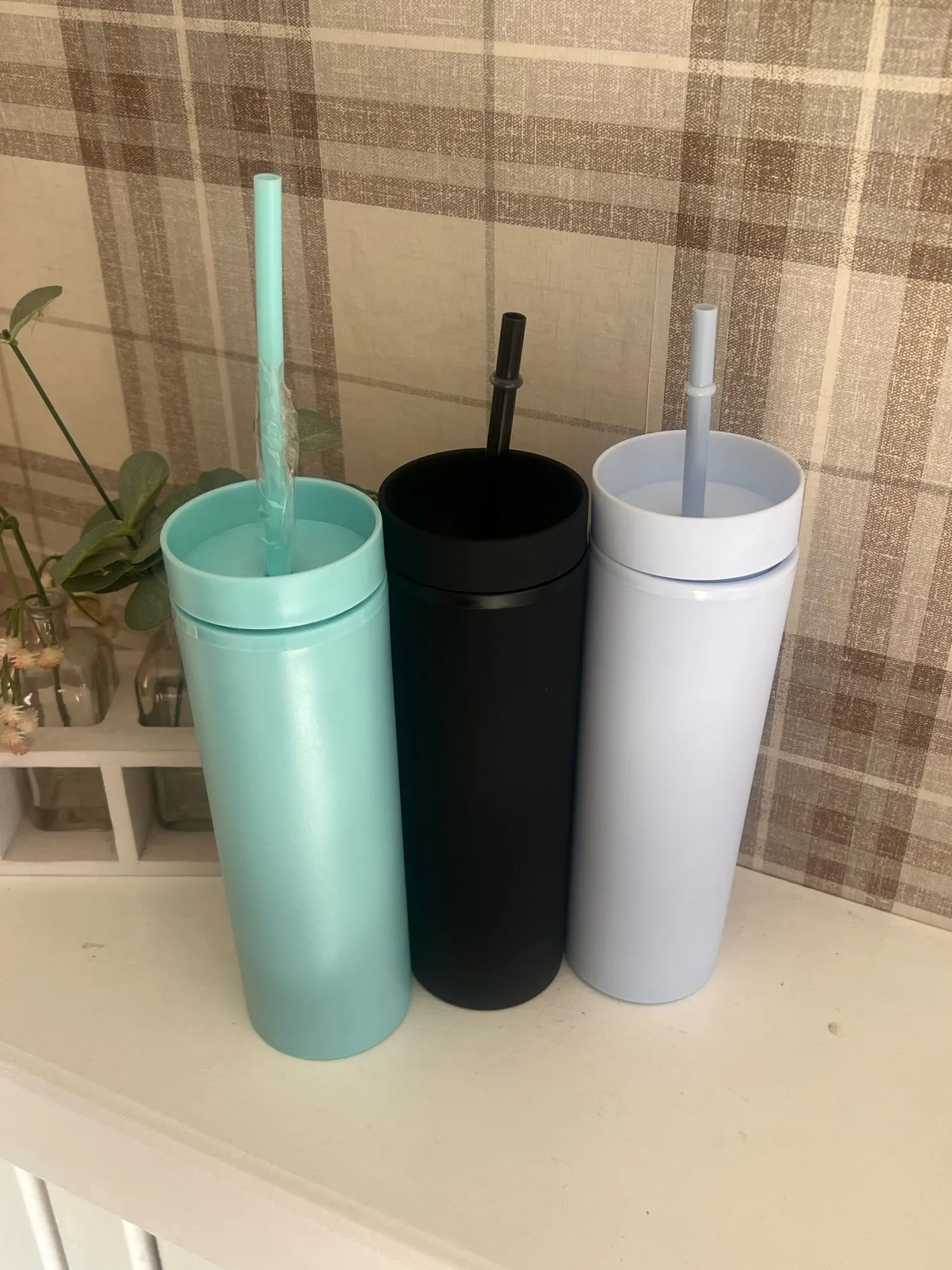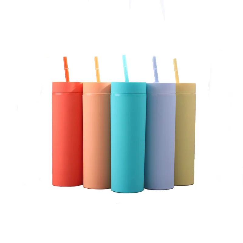 473 мл двойная стена матовая отделка многоразовый тонкий 16 унций пластиковый стакан двойная стена стакан с соломинкой