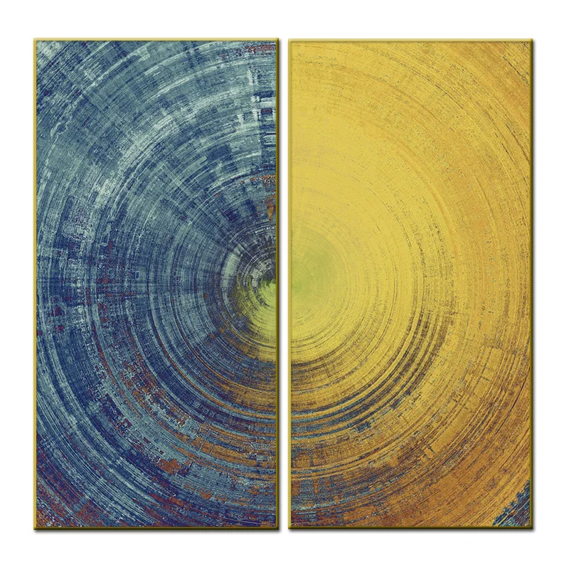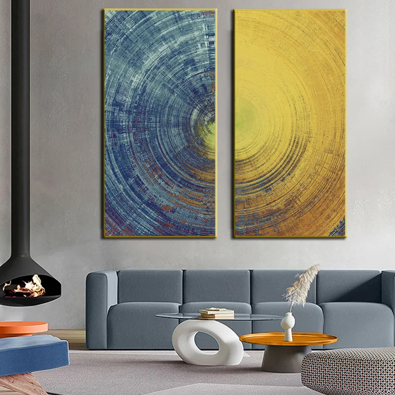 Абстрактная синяя желтая круглая Картина на холсте в скандинавском стиле настенный плакат и принты Модульная картина для декора гостиной