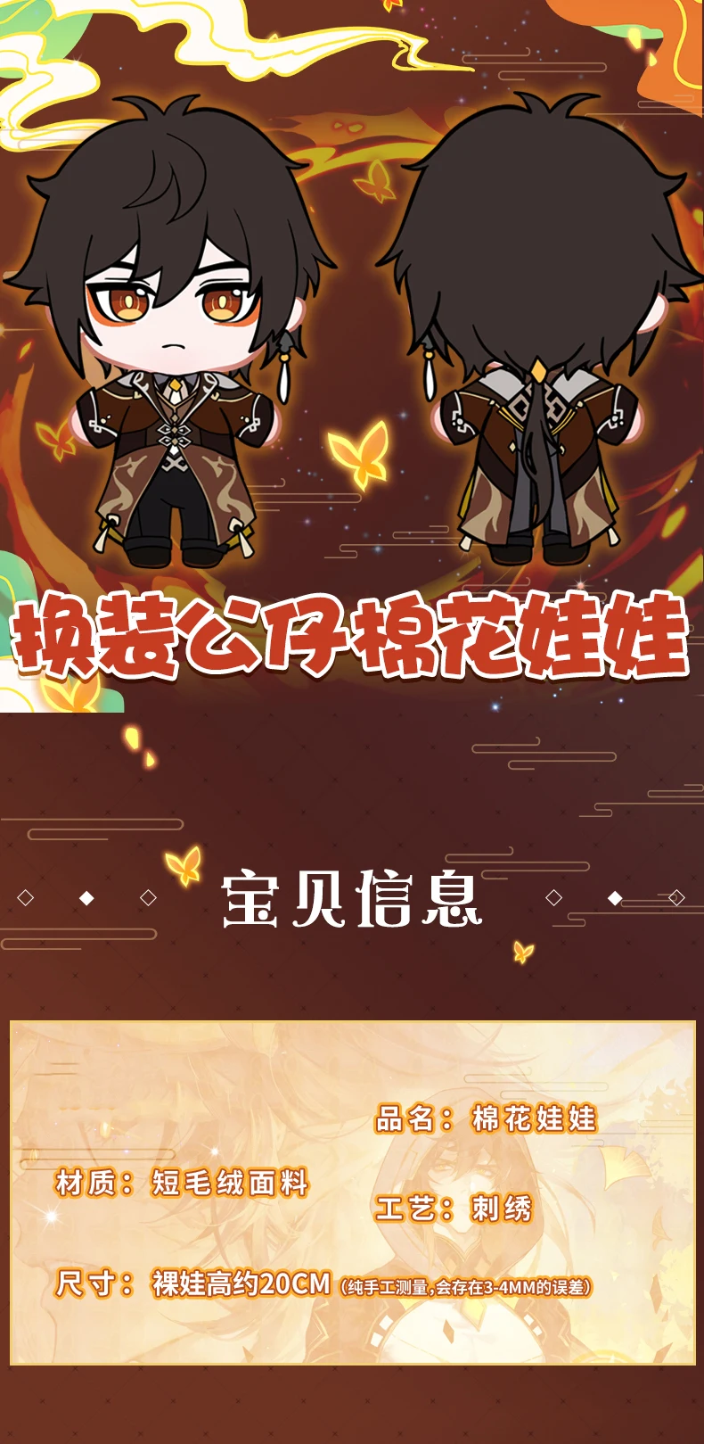 Игра Genshin Impact Zhongli 20 см, плюшевая кукла с одеждой, Venti, косплей, игрушка, тело, мягкий, милый, косплей, Хэллоуин, рождественские подарки