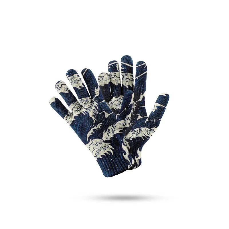 Перчатки трикотажные в японском стиле для мужчин и женщин, Нескользящие митенки для работы с сенсорным экраном, с 3D принтом, для вождения, зимние, нейлоновые