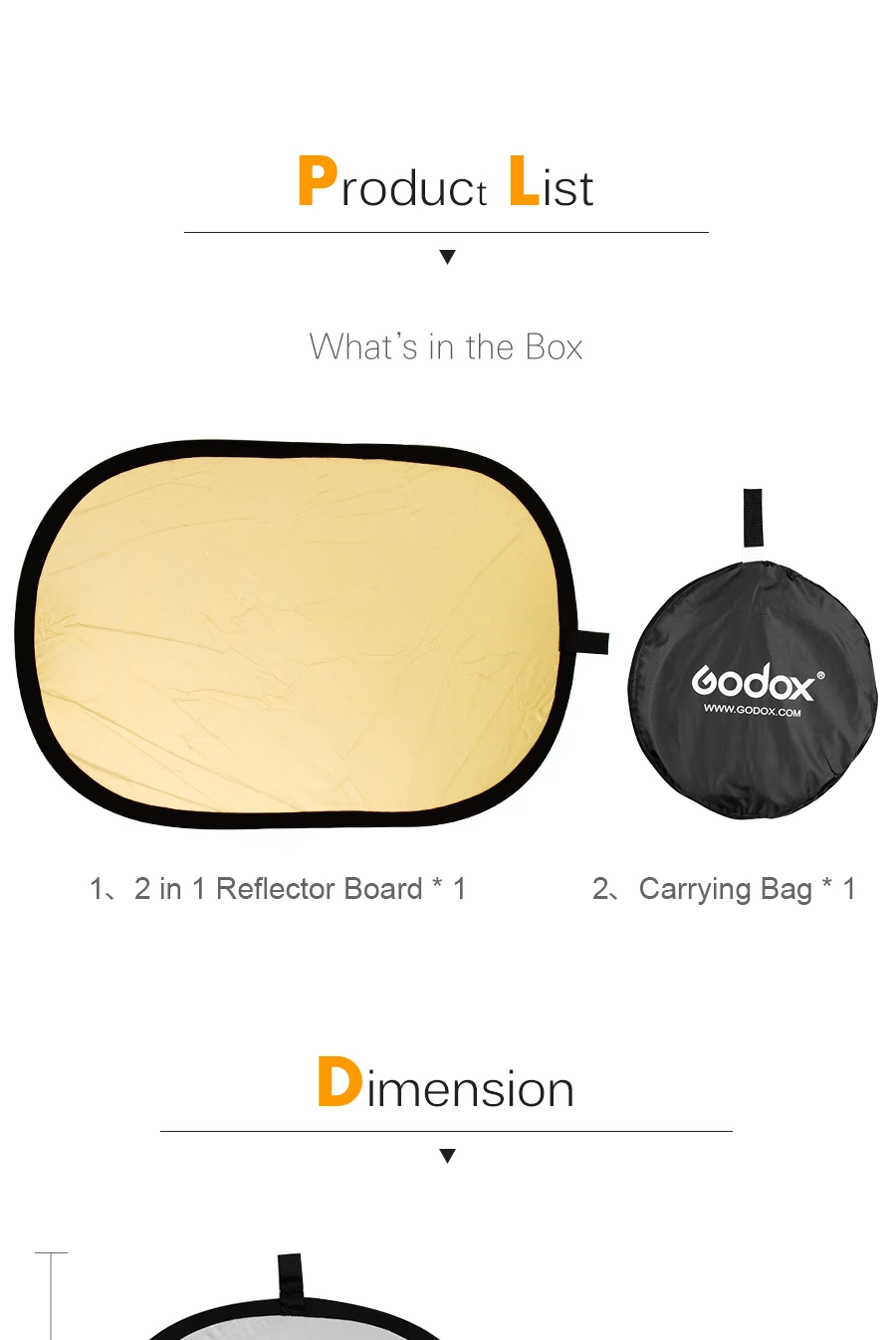 Портативный складной светильник GODOX 2в1 60x90 см, овальный отражатель для студийной фотосъемки 60x90 см