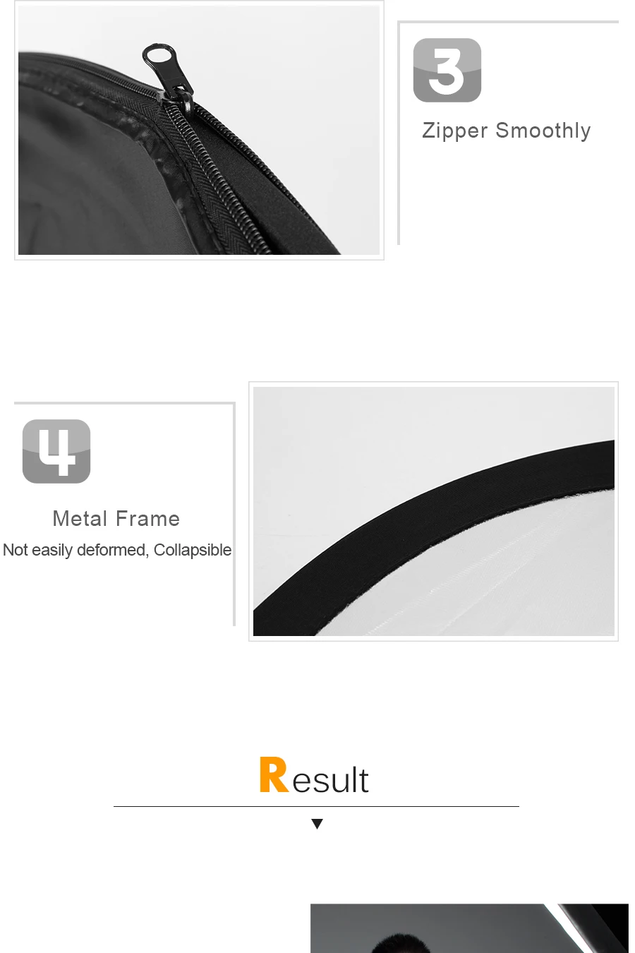 Нужен ли вам хороший отражатель освещения для создания замечательного эффекта изображения во время студийной или наружной съемки? Почему бы вам не попробовать этот складной отражатель? Это помощник для вашей работы. Он позволяет полностью контролировать светильник действительно аккуратным и простым способом. Этот гибкий светоотражатель можно аккуратно сложить в сумку и просто занять немного места. Подходит для большинства стандартных держателей отражателей, они легкие, поэтому вы можете взять их куда бы вы ни отправились. Это практичный отражатель освещения для профессиональных ленсманов или опалубки!