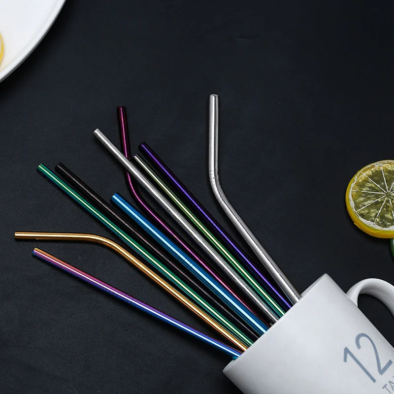 Набор многоразовых соломинок из нержавеющей стали, металлическая соломинка цветов радуги, с соломинкой