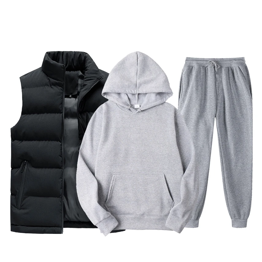 Комплект мужской спортивный из жилета, толстовки и штанов, однотонный, повседневный