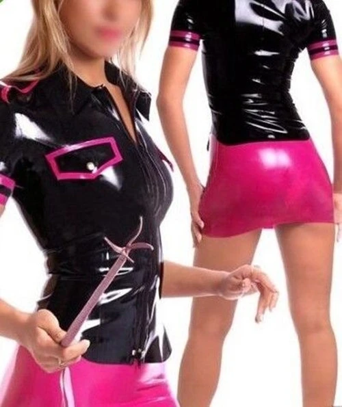 Латексные резиновые сексуальные маленькие юбки, женские черные и розовые крутые колготки, Униформа, размер детской одежды