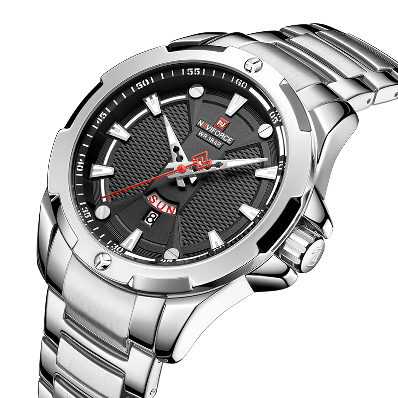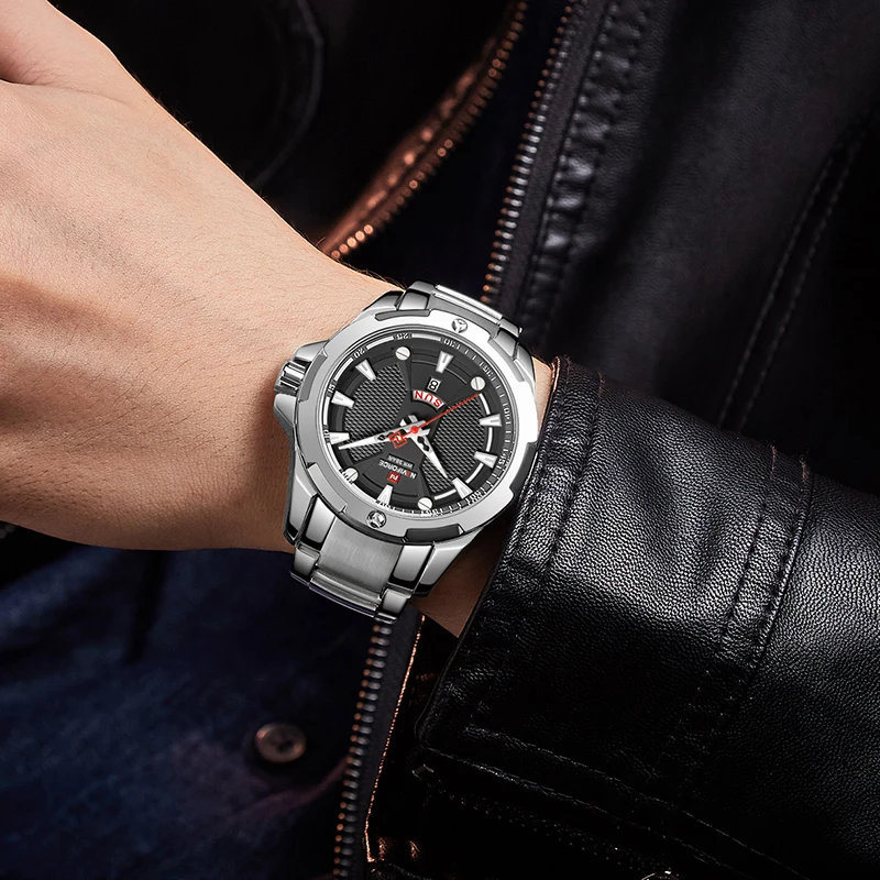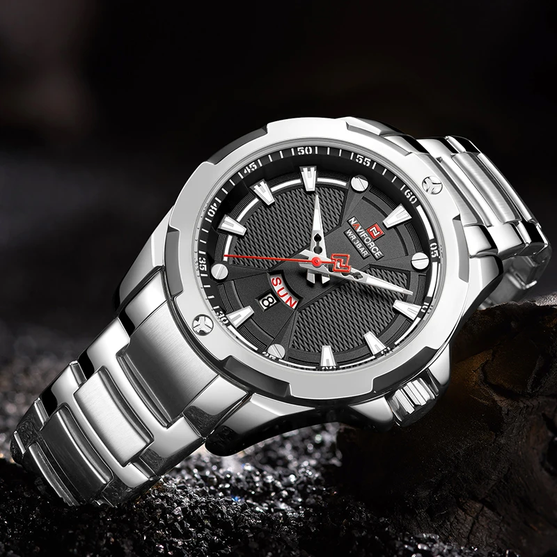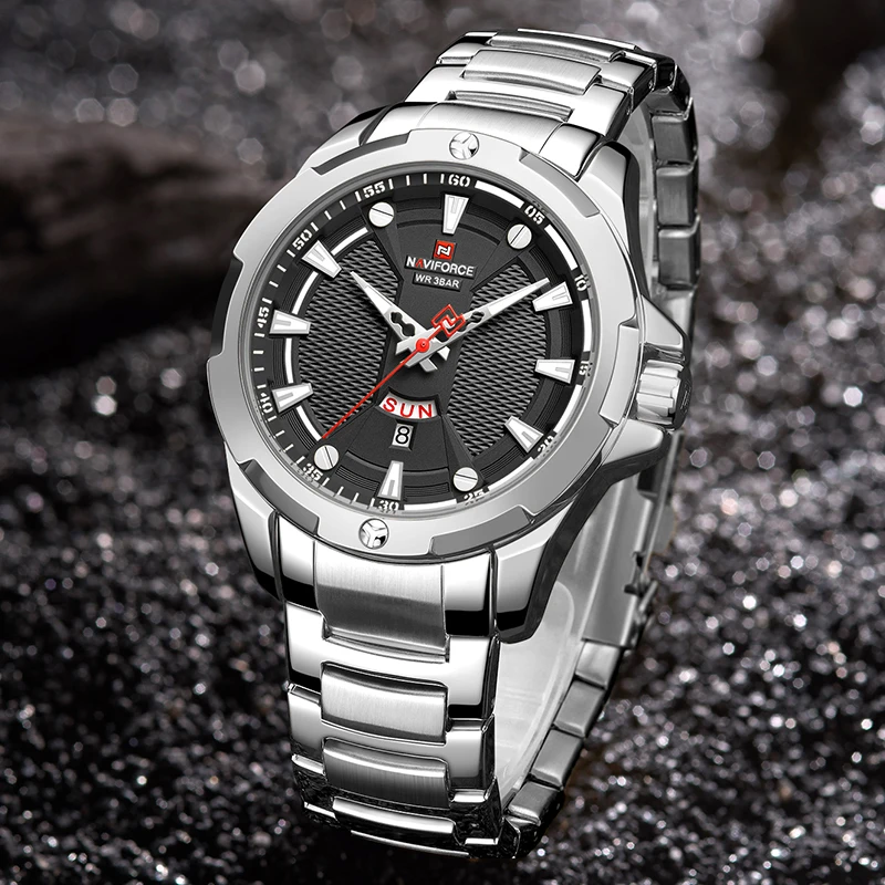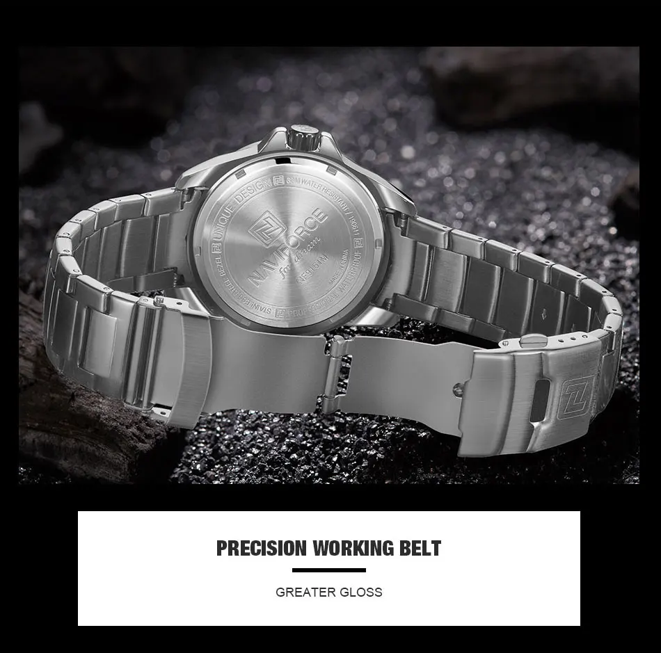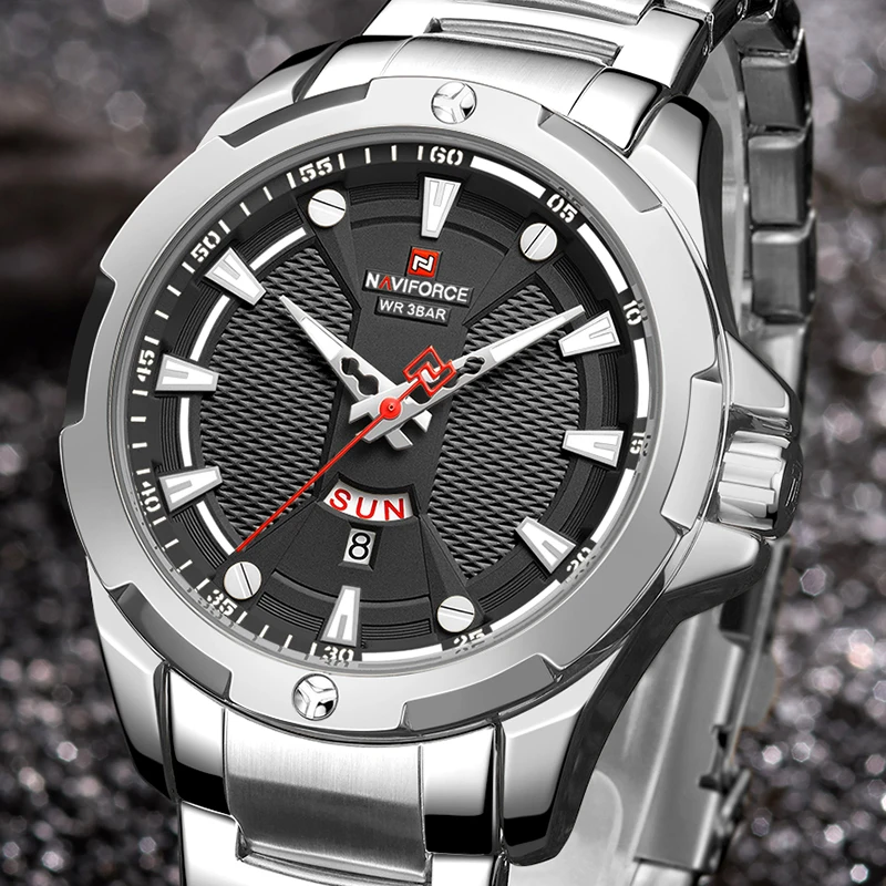 Новинка 2021, Роскошные мужские часы NAVIFORCE из нержавеющей стали, повседневные модные водонепроницаемые светящиеся кварцевые аналоговые часы с календарем