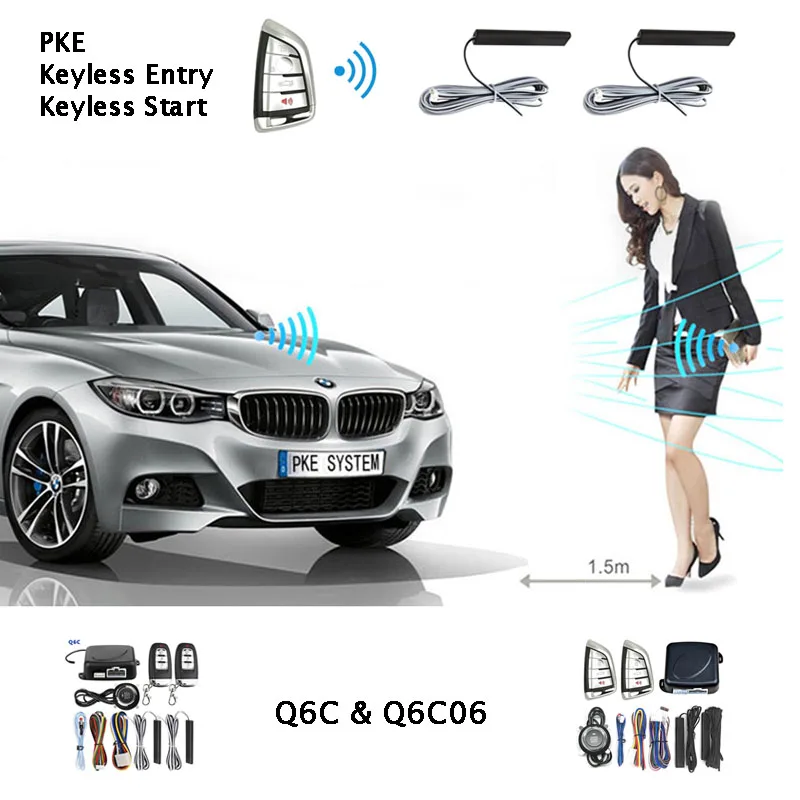 3. Бесключевая запись PKE, функция автоматического переключателя датчика блокировки, рядом с автомобилем 1-2 метра, автоматическое разблокирование датчика; Левый автоматический индукционный замок на расстоянии 3-5 метров.
