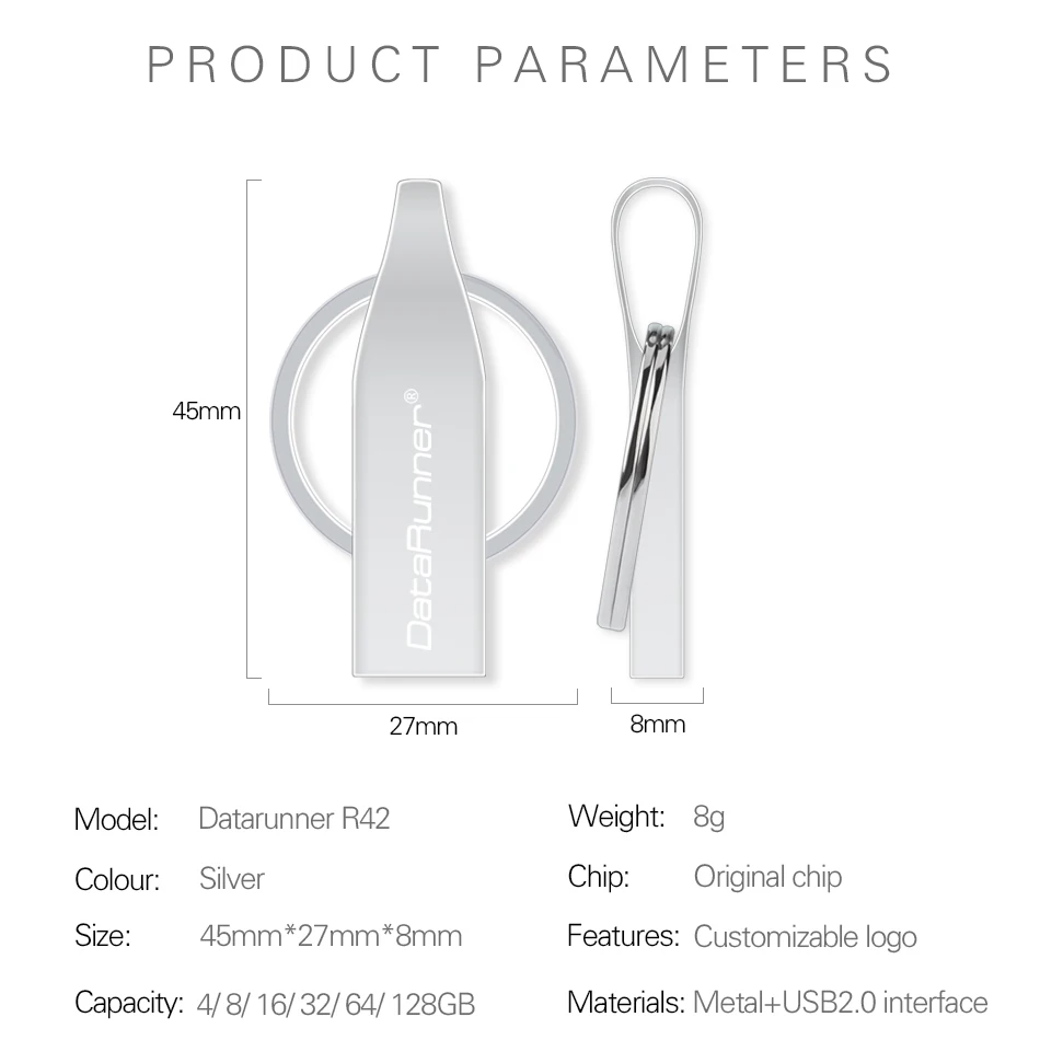 Водонепроницаемый флеш-накопитель DataRunner флеш-диск USB 2,0, 4 ГБ, 8 ГБ, 16 ГБ, 32 ГБ, 64 ГБ, 128 ГБ, флеш-накопитель брелок для ключей USB
