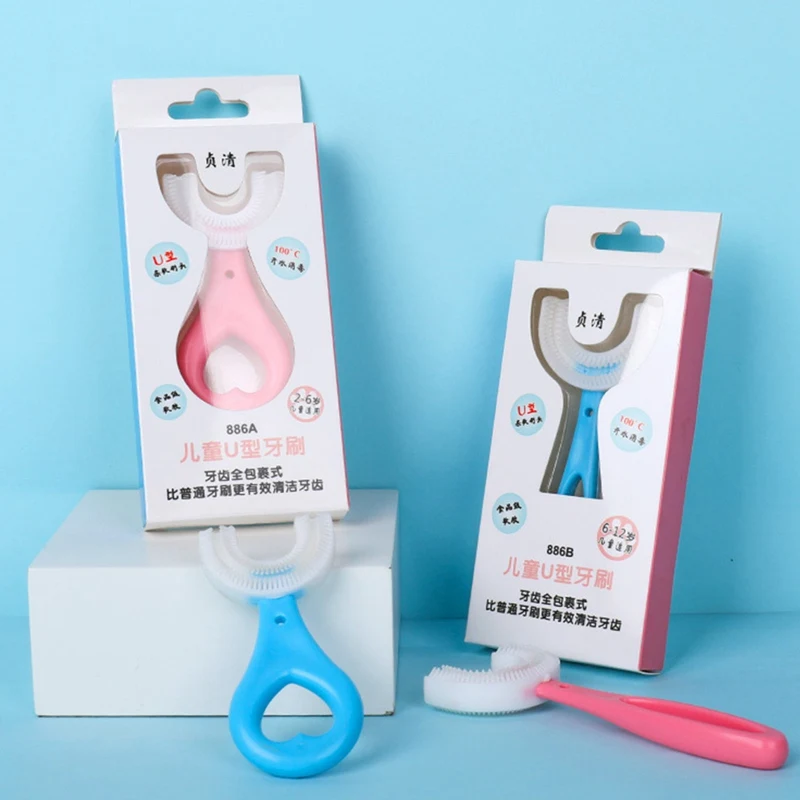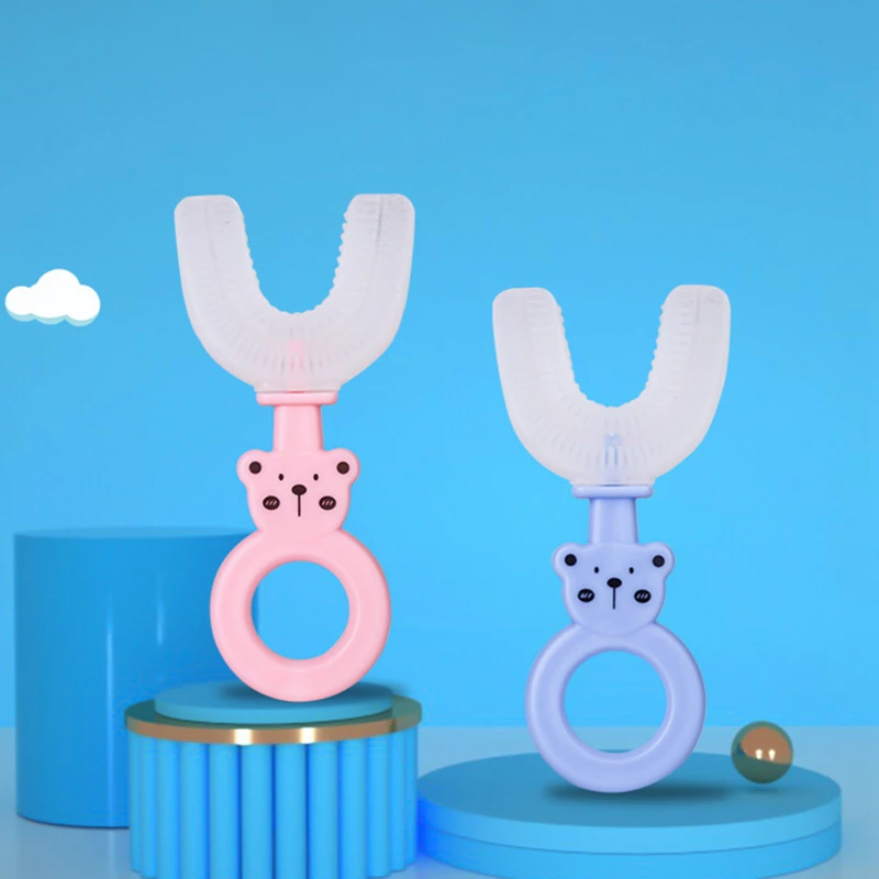 Новинка, детская U-образная зубная щетка, Силиконовая зубная щетка с мультяшным рисунком для детей, детская зубная щетка
