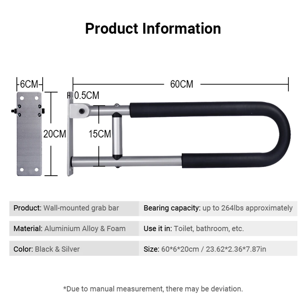 Изготовленный из высококачественного алюминиевого сплава, этот откидной держатель может обеспечить прочную поддержку стоя или сидя в ванной или туалете, Играя важную роль защиты и заботы о вашей семье.Особенности:Изготовлен из качественного алюминиевого сплава, высокой твердости и износостойкости, коррозионной стойкости и длительного срока службы.Складная планка захвата может поворачиваться на 90 ° вертикально и прижиматься к стене, когда она не используется, удобно хранить и экономить место.С 25,4 мм в диаметре и 2,0 мм толщиной, обеспечивая удобный захват и сильную несущую способность и обеспечения безопасности.Подходит для пожилых людей, людей с ограниченными возможностями, беременных женщин и послеоперационных людей с ограниченной мобильностью, чтобы помочь им встать и сидеть легче, предотвращая скольжение или падение.Специально разработан для ванной комнаты, душа, туалета, ванной, торгового зала и т. д.Простая установка:(1) Выберите место установки;(2) Измерьте высоту установки;(3) отметьте положение отверстий;(4) пробивайте отверстия в обозначенном положении;(5) Вставьте винты в отверстия;(6) отверстия с фиксатором и затяните винты.Характеристики:Модель: с черной губкой/без черной губки(Опционально)Материал: алюминиевый сплавЦвет: черный и серебристый/серебристый(Опционально)Размер изделия: прибл. 60*6*20 см/23,62*2,36 * 7.87inВес изделия: прибл.E18181-1: 1000 г/35,27 унцийE18181-2: 980 г/34,57 унцийРазмер посылка: прибл. 62,5*21*9 см/24,61*8,27*3,54 дюймаВес посылка: прибл.E18181-1: 1360 г/47,97 унцийE18181-2: 1300 г/45,86 унцийПримечание:Только балка, другие аксессуары на картинке не включены.Перед покупкой измерьте размер и расстояние установки вашего унитаза.Упаковочный лист:1 * захват бар1 * упаковка винтовые принадлежности