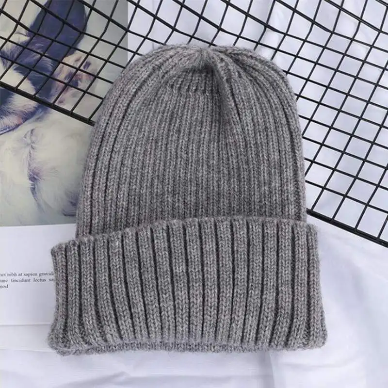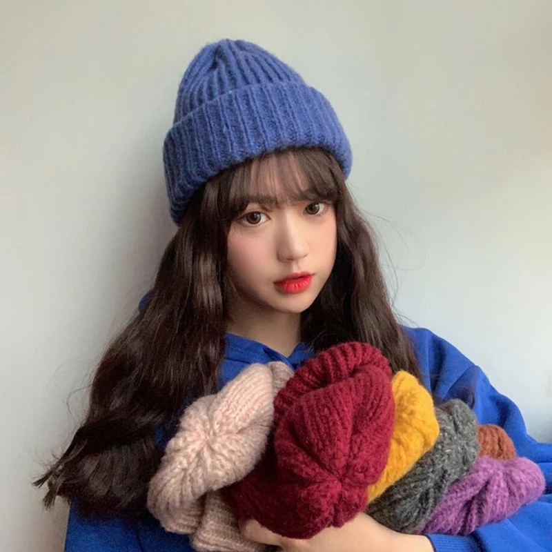 2021 зимняя однотонная шерстяная вязаная шапка, Женская Повседневна...