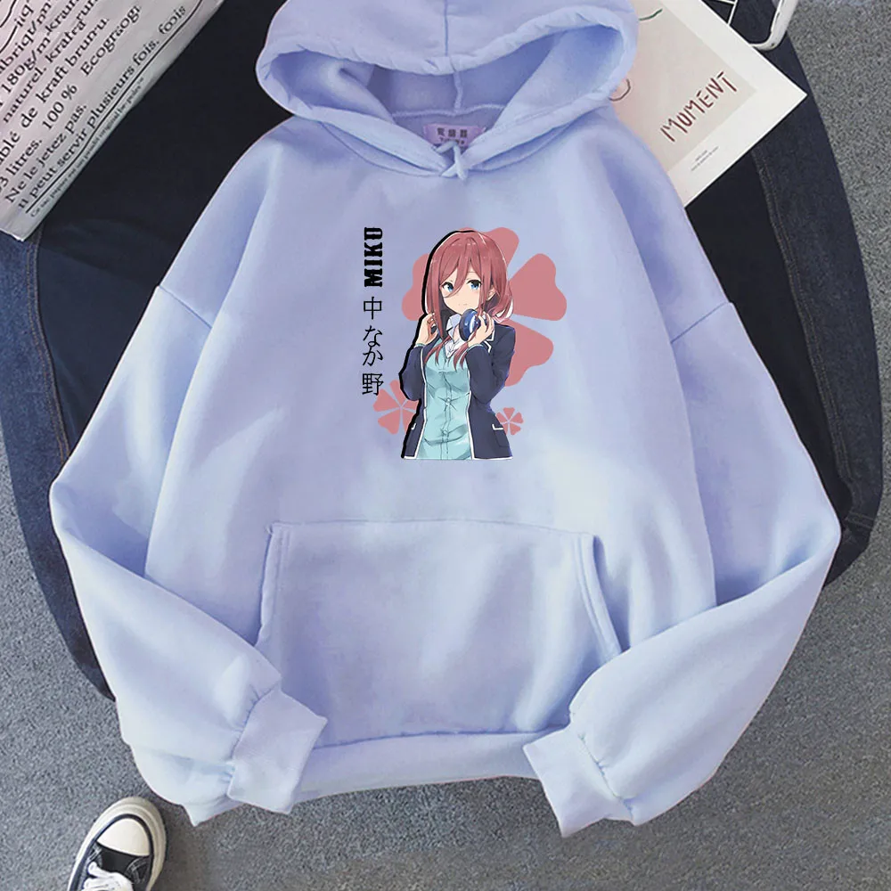 Толстовка в стиле аниме Харадзюку С Капюшоном Накано Мику с милым принтом манги, модная зимняя Толстовка большого размера